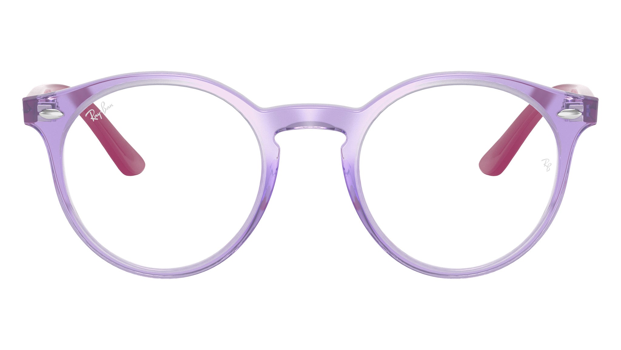Occhiali da vista Ray-Ban Kids RY1594 color violet trasparente in acetato codice colore 3810. Forma panto full rim con lenti demo. Con custodia originale e garanzia. Rivenditore autorizzato Ray-Ban.
