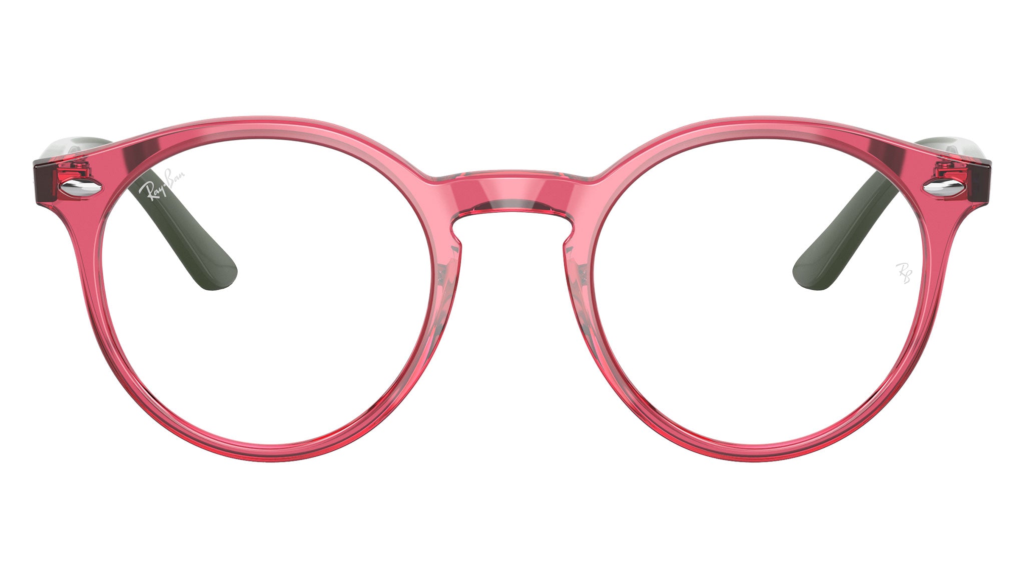 Occhiali da vista Ray-Ban Kids RY1594 color rosso trasparente in acetato codice colore 3886. Forma panto full rim con lenti demo. Con custodia originale e garanzia. Rivenditore autorizzato Ray-Ban.