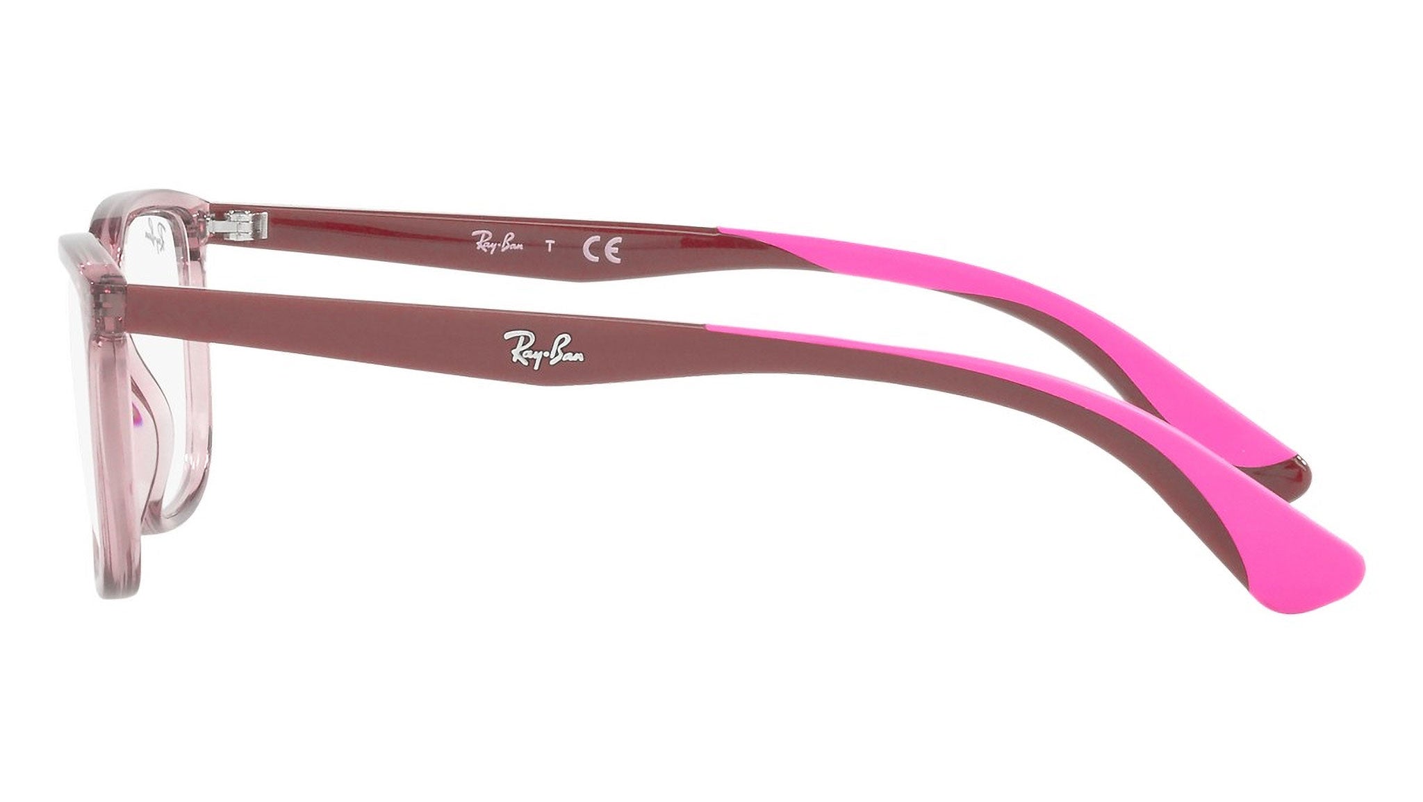 Occhiali da vista Ray-Ban Kids RY1605 color trasperento rosa in acetato codice colore 3777. Forma rettangolare full rim con lenti demo. Con custodia originale e garanzia. Rivenditore autorizzato Ray-Ban.
