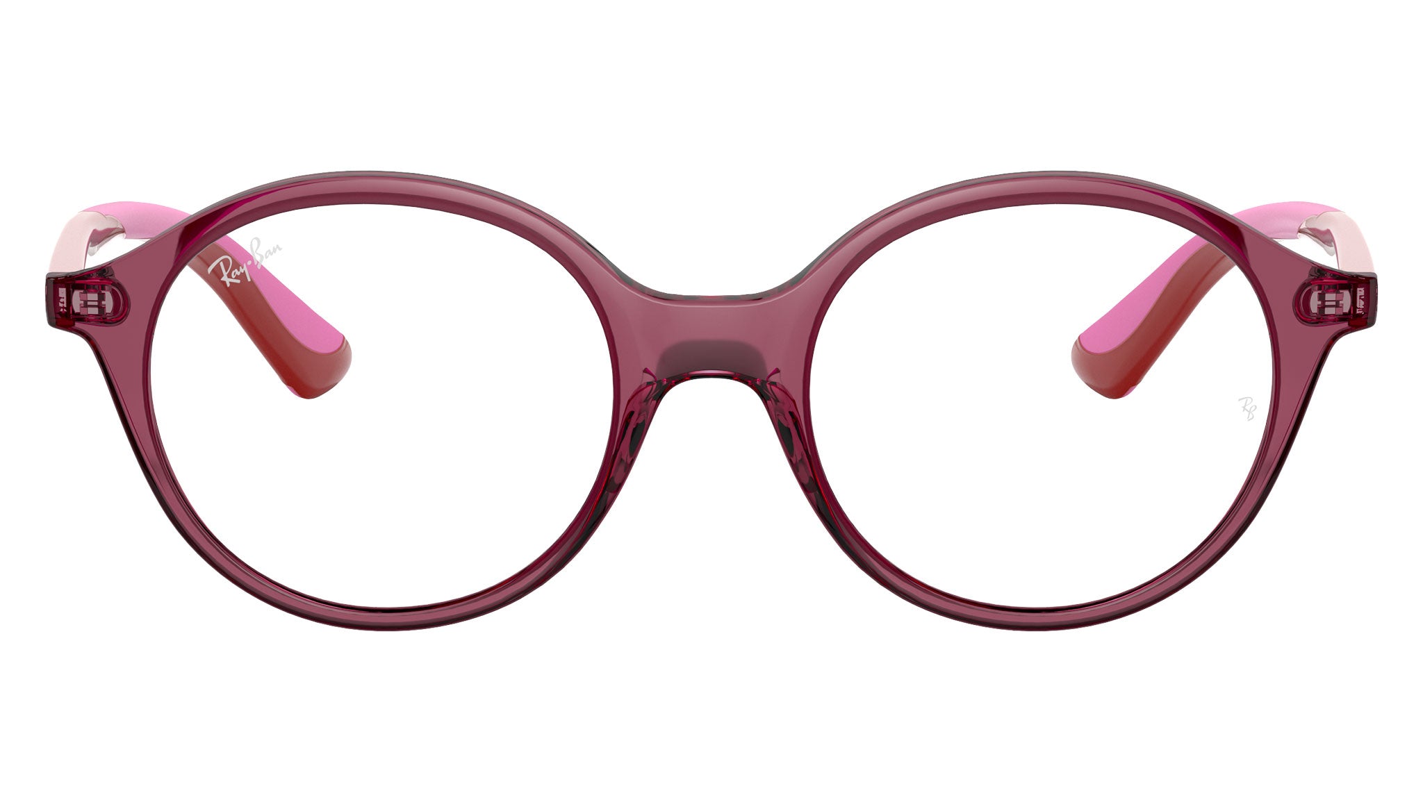 Occhiali da vista Ray-Ban Kids RY1606 color rosa trasparente in acetato codice colore 3777. Forma rotonda full rim con lenti demo. Con custodia originale e garanzia. Rivenditore autorizzato Ray-Ban.