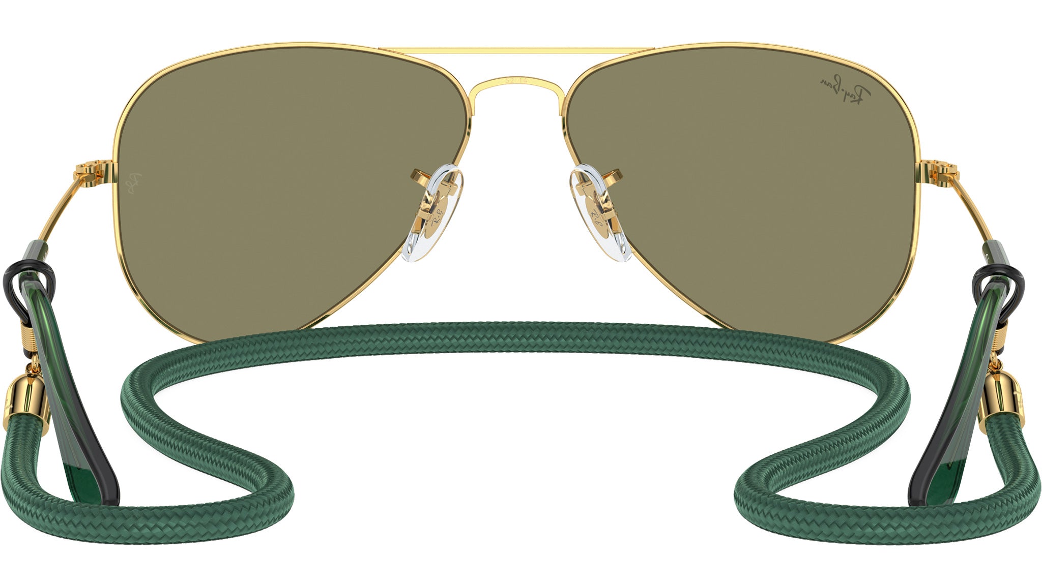 Occhiali da sole Ray-Ban Junior Aviator RJ9506S 223/6R unisex con montatura aviatore in metallo oro e lenti in policarbonato color verde. Naselli regolabili. Linea: Kids Originals. Codice modello: 0RJ9506S. Codice colore: 223/6R. Rivenditore autorizzato Ray-Ban online. Gli occhiali vengono consegnati con custodia e accessori originali e sono coperti dalla garanzia ufficiale di 12 mesi del produttore.