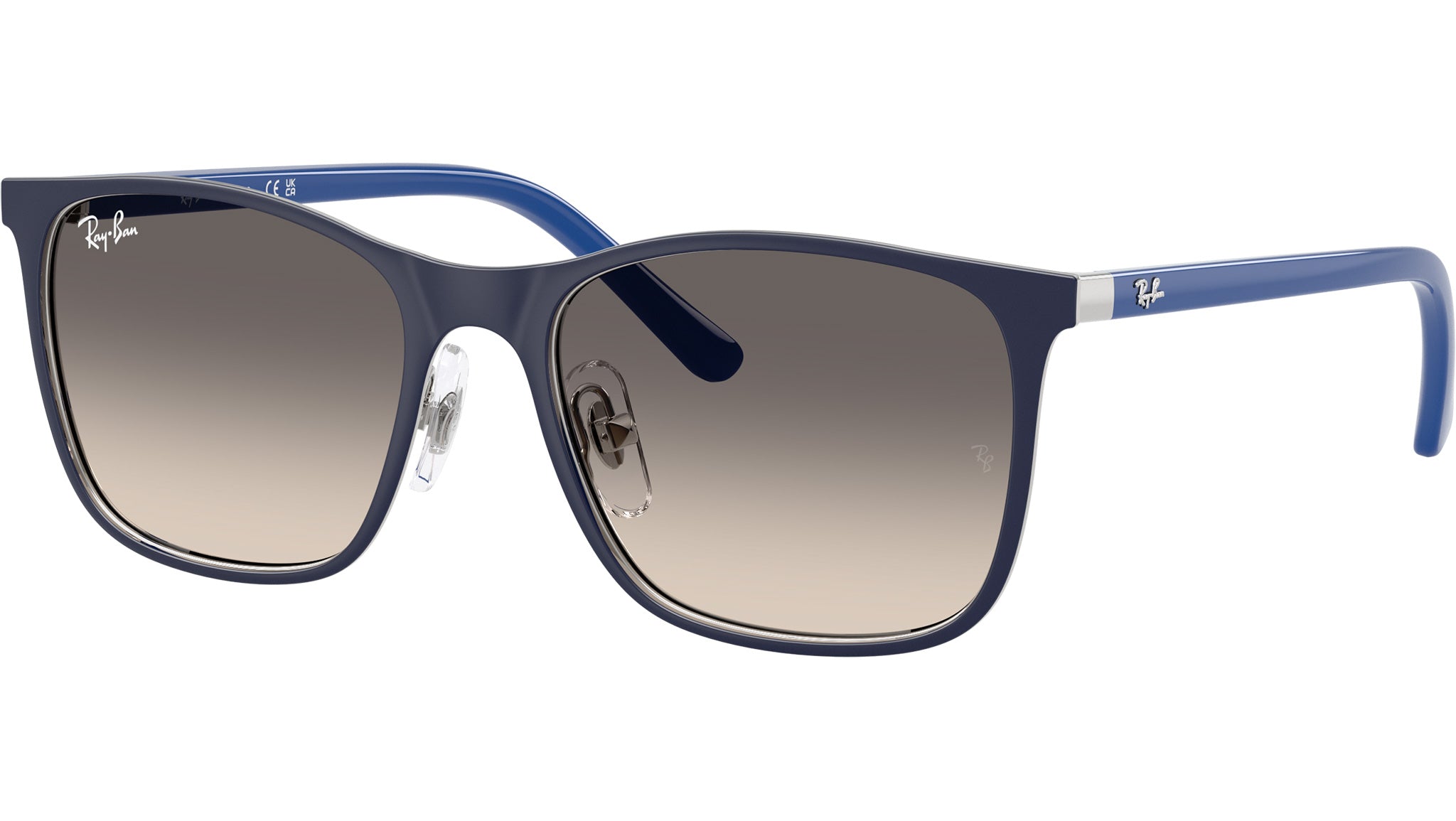 Occhiali da sole Ray-Ban Junior RJ9551S 298/11 unisex con montatura squadrata in metallo blu su argento e lenti in policarbonato color grigio sfumato. Naselli regolabili. Linea: Kids Innovation. Codice modello: 0RJ9551S. Codice colore: 298/11. Rivenditore autorizzato Ray-Ban online. Gli occhiali vengono consegnati con custodia e accessori originali e sono coperti dalla garanzia ufficiale di 12 mesi del produttore.