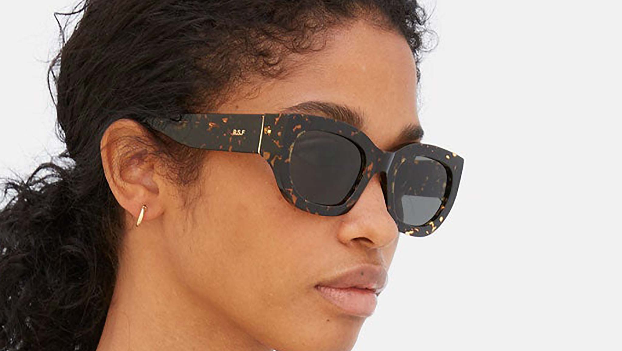 Eyewear design that transcends seasonal trends, capturing that sharp, timeless elegance with RSF’s thick acetate rims and a playful flair. Alva crosses over from the sunny Riviera to the busy streets of our cities. Day and night. Its angular temples and fresh design balances the rounded appeal of its broad lenses. This version comes in a spotted Havana acetate with black lenses. Sizes: R Lens Width: 53 mm. Frame Front: Frame Side: 140 mm. Product Code Size R: 12K