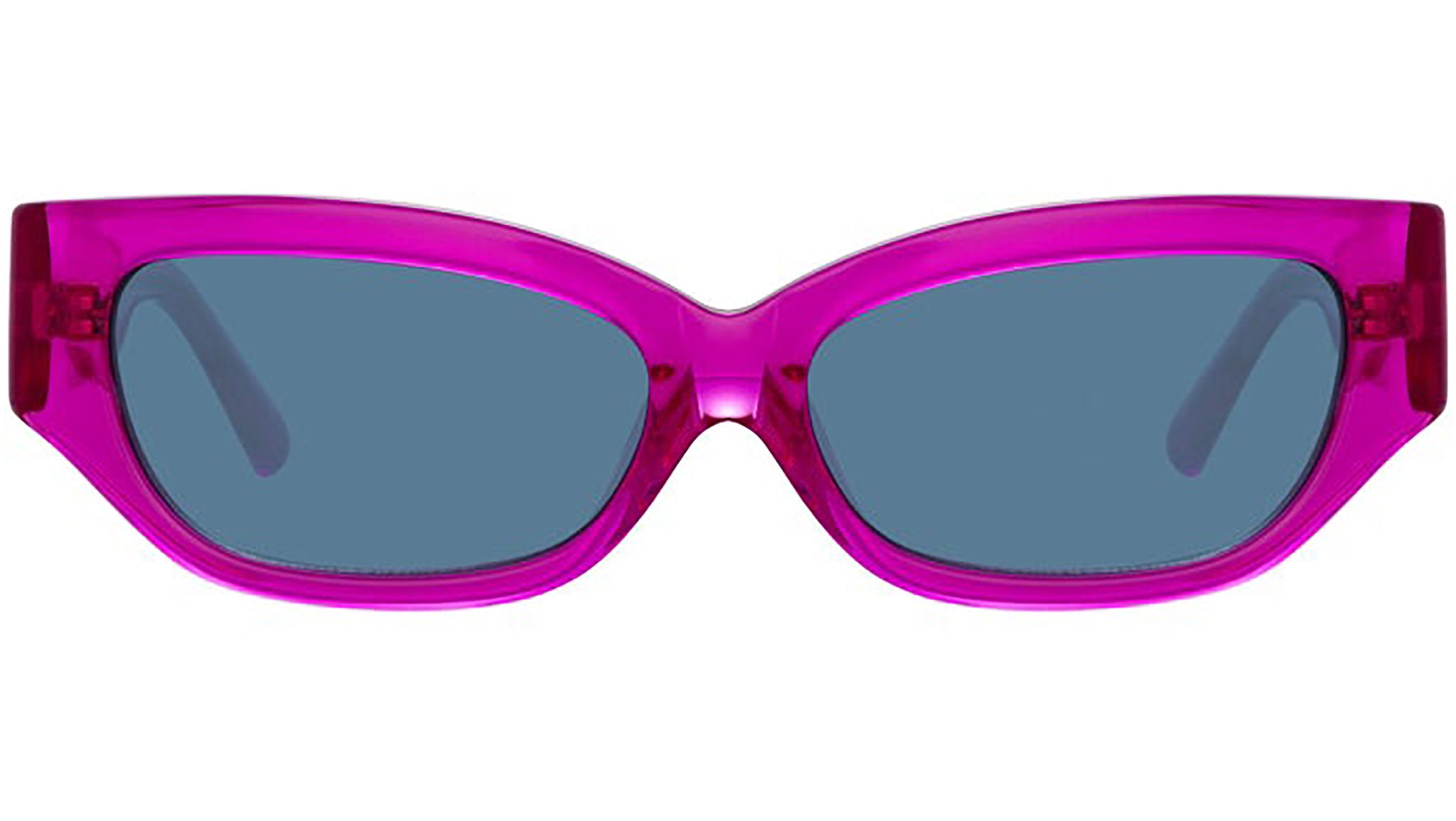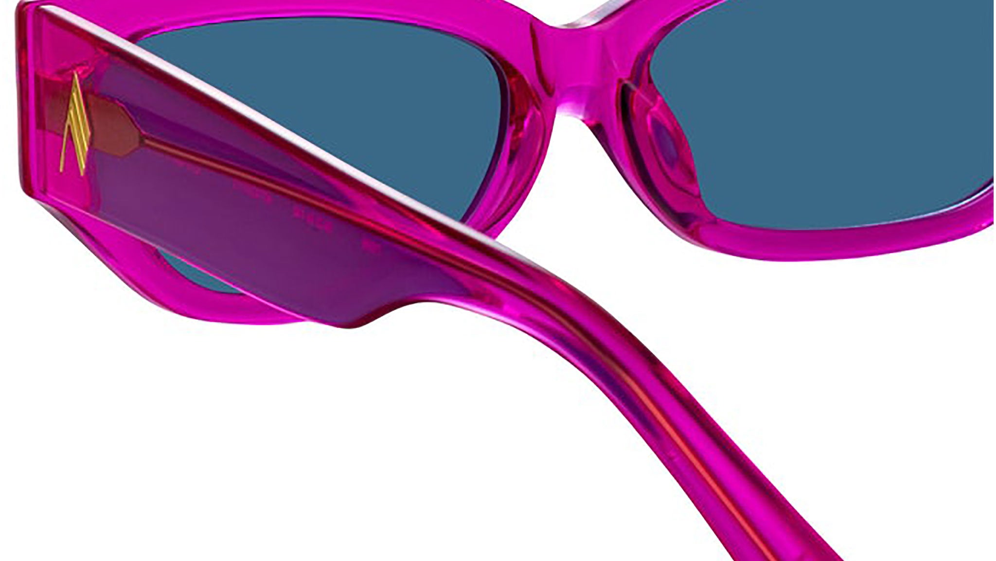 The Vanessa cat eye sunglasses are the latest style from the collaboration with Milan fashion house The Attico. The angled frames are sculpted from recycled fuschia Italian acetate and hand polished to achieve a high shine. Temples are detailed with gold branding and solid blue lenses offer 100% UV protection. Sculpted nose pads and temple tips ensure a comfortable fit.