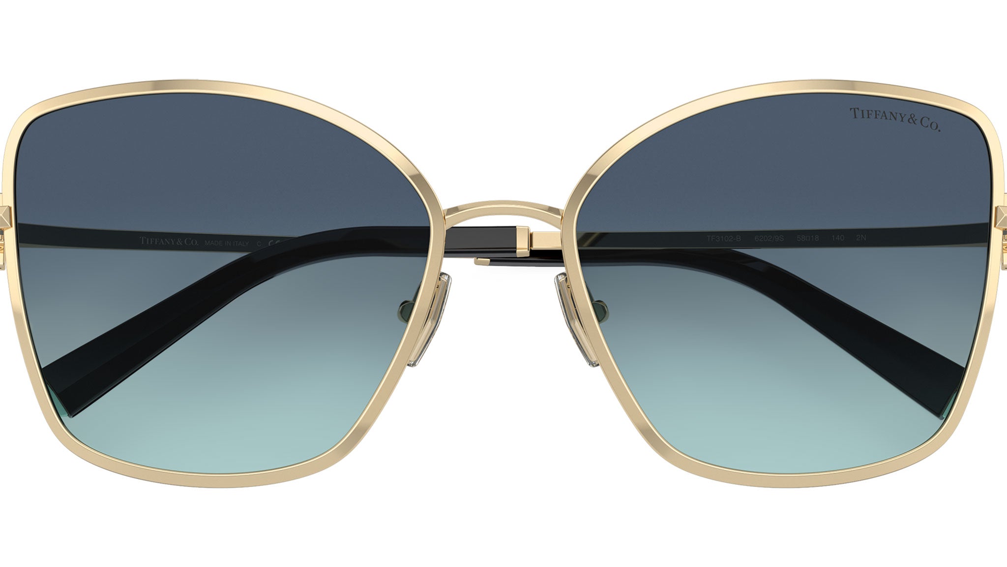 Occhiali da sole Tiffany donna modello 3102B full rim in metallo oro chiaro con lenti blu azzurro sfumato base 4. Naselli regolabili. Linea: Icons. Codice brand: 0TF3102B. Codice colore: 62029S. Rivenditore autorizzato online Tiffany Eyewear. Ogni prodotto Tiffany viene consegnato con astuccio originale e accessori ed è coperto da garanzia del produttore di 12 mesi.