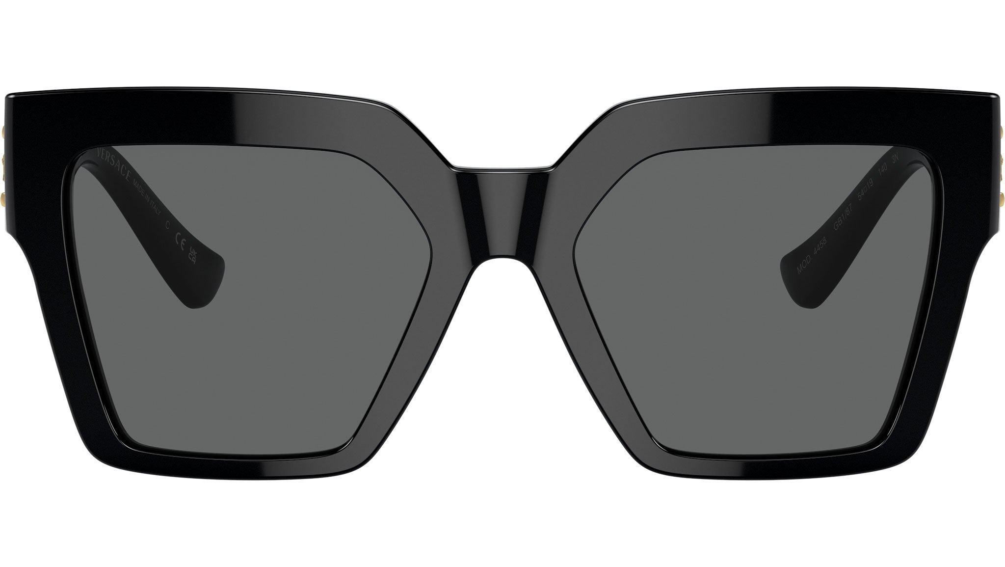 Occhiali da sole Versace donna modello 4458 full rim in acetato color nero con lenti grigio scuro base 6. Vestibilità a ponte alto. Linea: Iconic. Codice brand: 0VE4458. Codice colore: GB1/87. Rivenditore autorizzato online Versace Eyewear. Ogni prodotto Versace viene consegnato con astuccio originale e accessori ed è coperto da garanzia del produttore di 12 mesi.