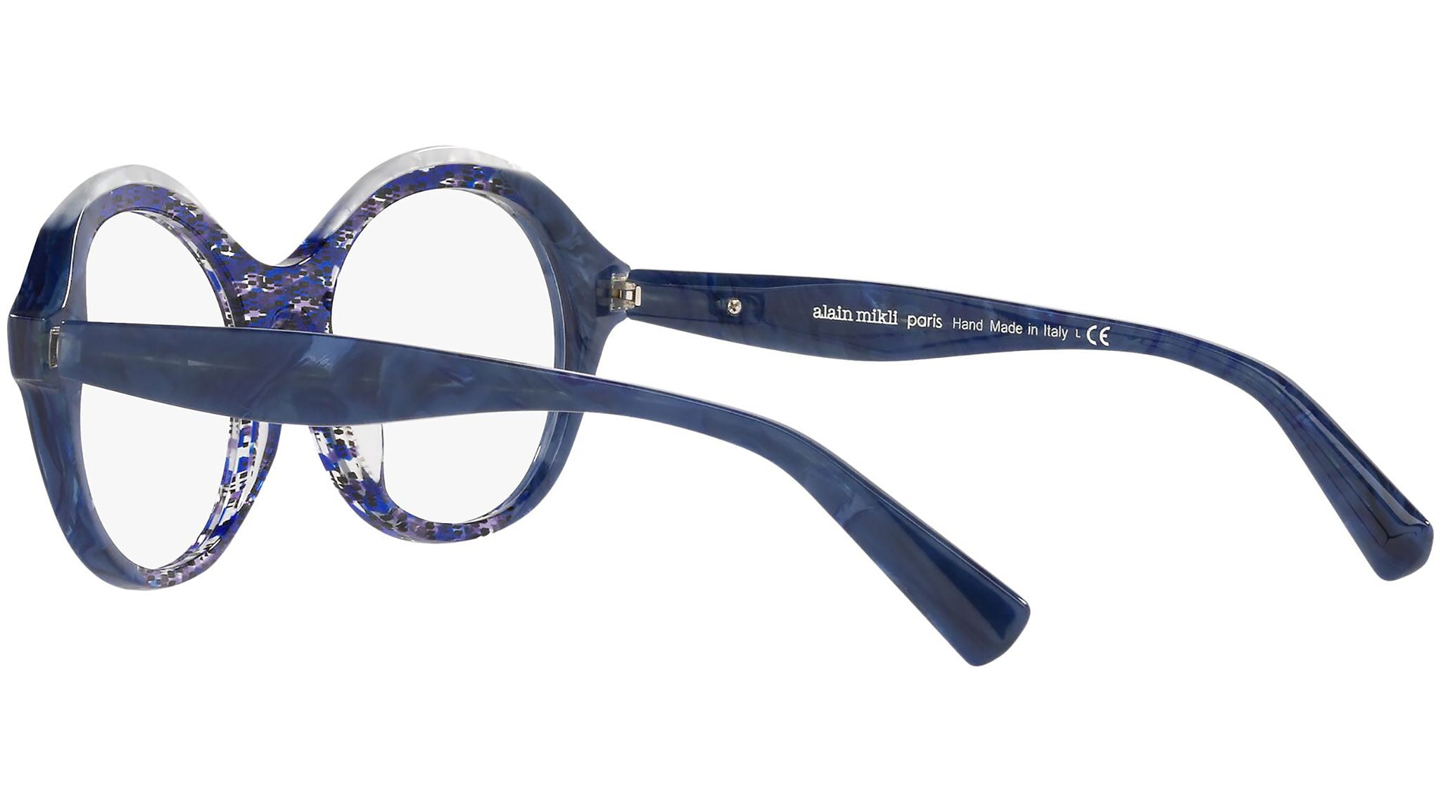 Occhiali da vista Alain Mikli modello A03118 variante colore blu fishnet / bianco e blu, codice colore 001. Alain Mikli è stato il primo marchio a sostenere l’idea di occhiale come accessorio. Dalla fusione di arte e moda nascono montature da sempre sinonimo di unicità e provocazione, contraddistinte per il design originale e le combinazioni di colori esclusive.