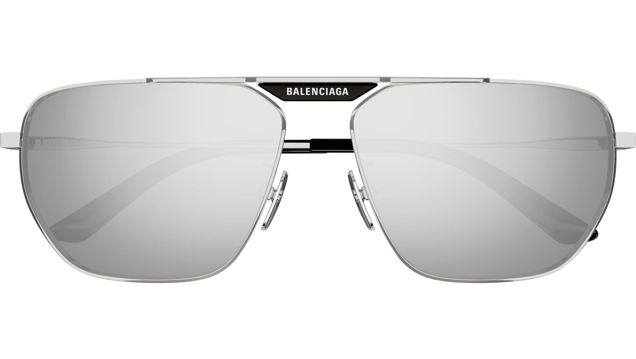 Occhiali da sole Balenciaga modello BB0298SA linea Everyday codice colore 002 argento lucido in metallo forma rectangle con lenti color grigio tinta unita + specchio argento super forte.