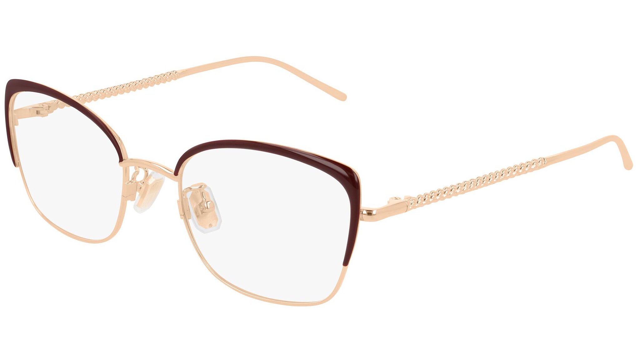 Occhiali da vista BC0098O 003 della collezione Boucheron Serpent Bohème con montatura oro rosso lucido / rosso e astine color oro.
