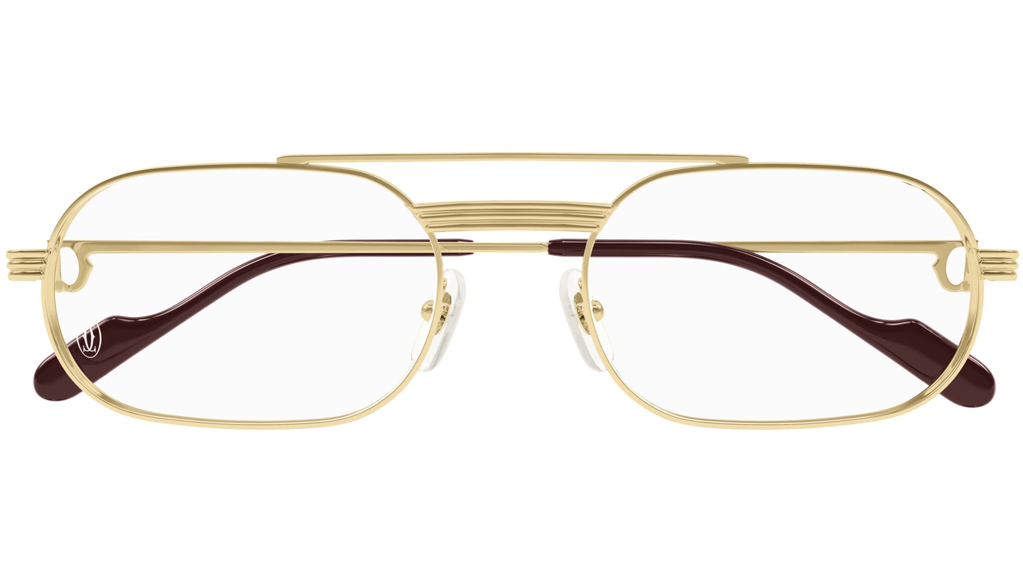 Occhiali da vista Cartier linea Exception modello CT0410O variante colore 001 oro finitura smooth con astine color oro.
