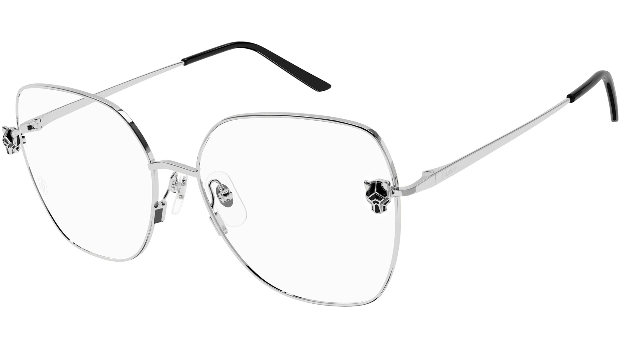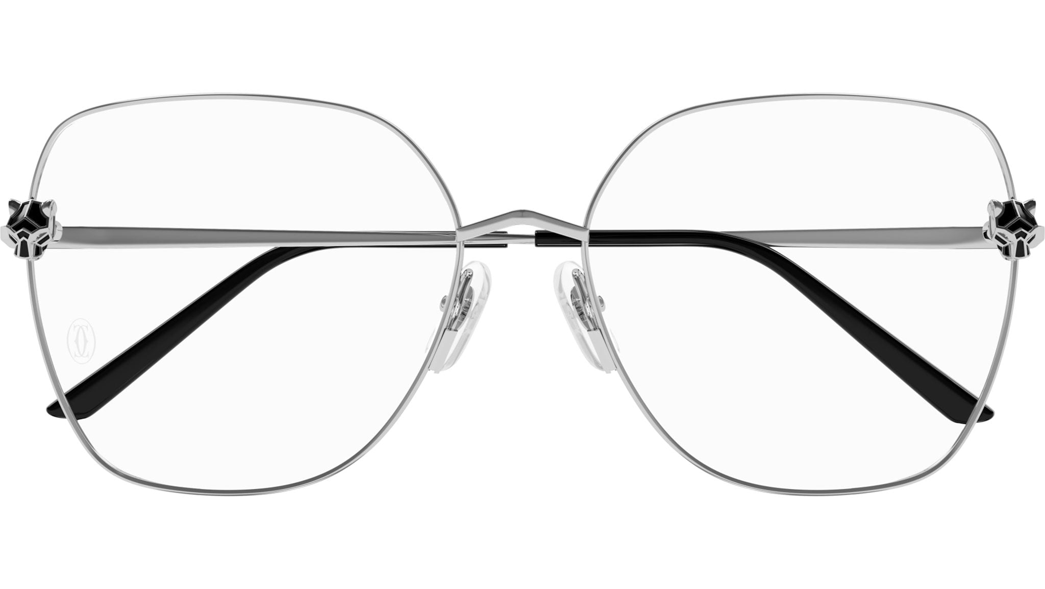 Occhiali da vista Cartier linea Core Range modello CT0417O variante colore 002 finish platino levigato con astine color argento.