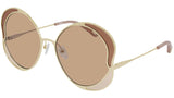 Occhiali da sole Chloé modello CH0024S 003, variante colore oro lucido classico con lenti color nude tinta unita. Nelle ultime stagioni, Chloé si è guadagnata il favore dell'industria della moda e dei consumatori di tutto il mondo, come brand sofisticato che incarna pienamente i valori della femminilità moderna, della grazia, della fiducia e della disinvoltura. La Maison parigina è riconosciuta per il suo fascino naturale, che bilancia il savoir-faire dei couturier di alta gamma con un'attitudine giovanile.