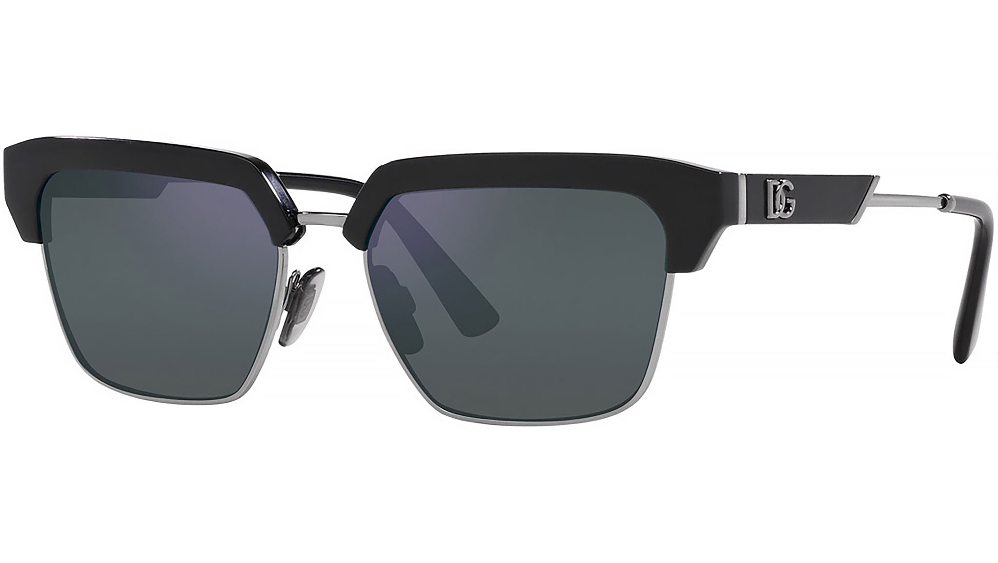 Occhiali da sole Dolce&Gabbana modello DG 6185 linea Smart codice colore 501/55 nero in injection forma square con lenti color verde chiaro a specchio blu.