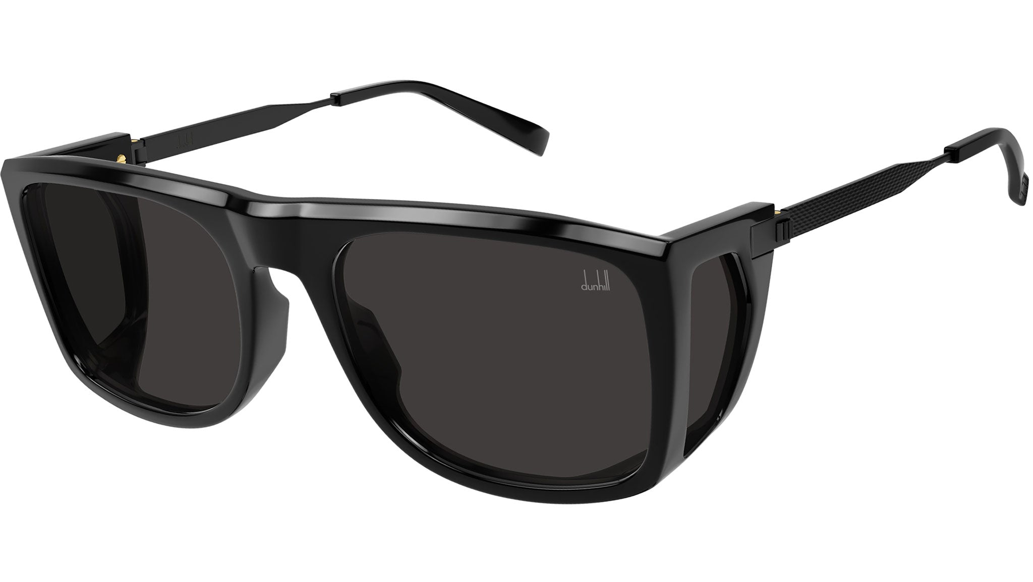 Occhiali da sole Dunhill linea Dunhill modello DU0054S variante colore 001 nero lucido tinta unita con lenti color grigio tinta unita.