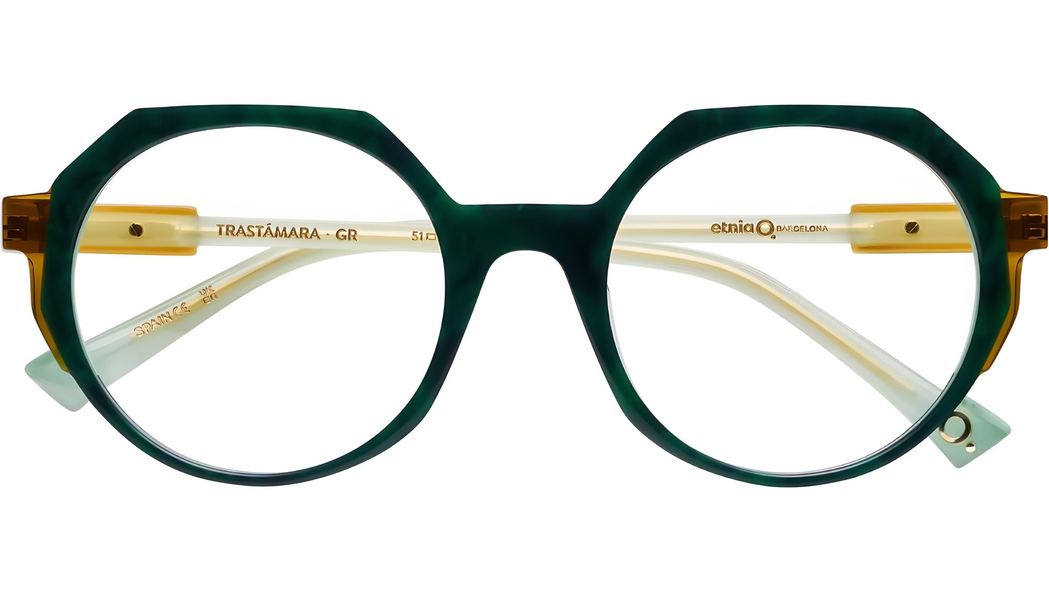 Occhiali da vista Etnia Barcelona Trastamara in acetato verde con lenti demo. Codice modello: TRASTAMARA 51O. Codice colore: GR. Rivenditore autorizzato online Etnia Barcelona. Gli occhiali vengono forniti con custodia e accessori originali e sono coperti dalla garanzia standard del produttore di 12 mesi.