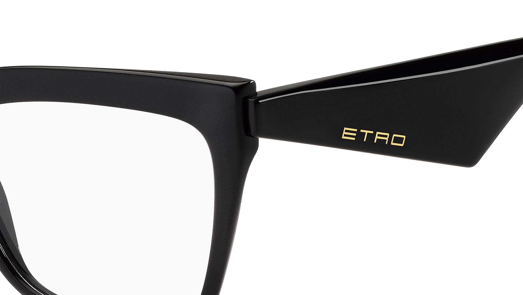 Occhiali da vista ETRO modello 0006 codice colore 807 nero con lenti demo Una sintesi del DNA moderno ed eclettico della Maison, la linea "ETRO Tailoring" combina una montatura in acetato estremamente leggera con aste triangolari dall'appeal retrò, creando un affascinante gioco di volumi e proporzioni. I terminali hanno un design iconico che richiama la simmetria del logo ETRO: un tocco distintivo che identifica tutti gli occhiali del brand. Realizzati in acetato di qualità in tinta unita o dalle tonalità sfumate, questi occhiali da vista sono completati con il logo ETRO sull'asta. Rivenditore autorizzato online ETRO Eyewear.