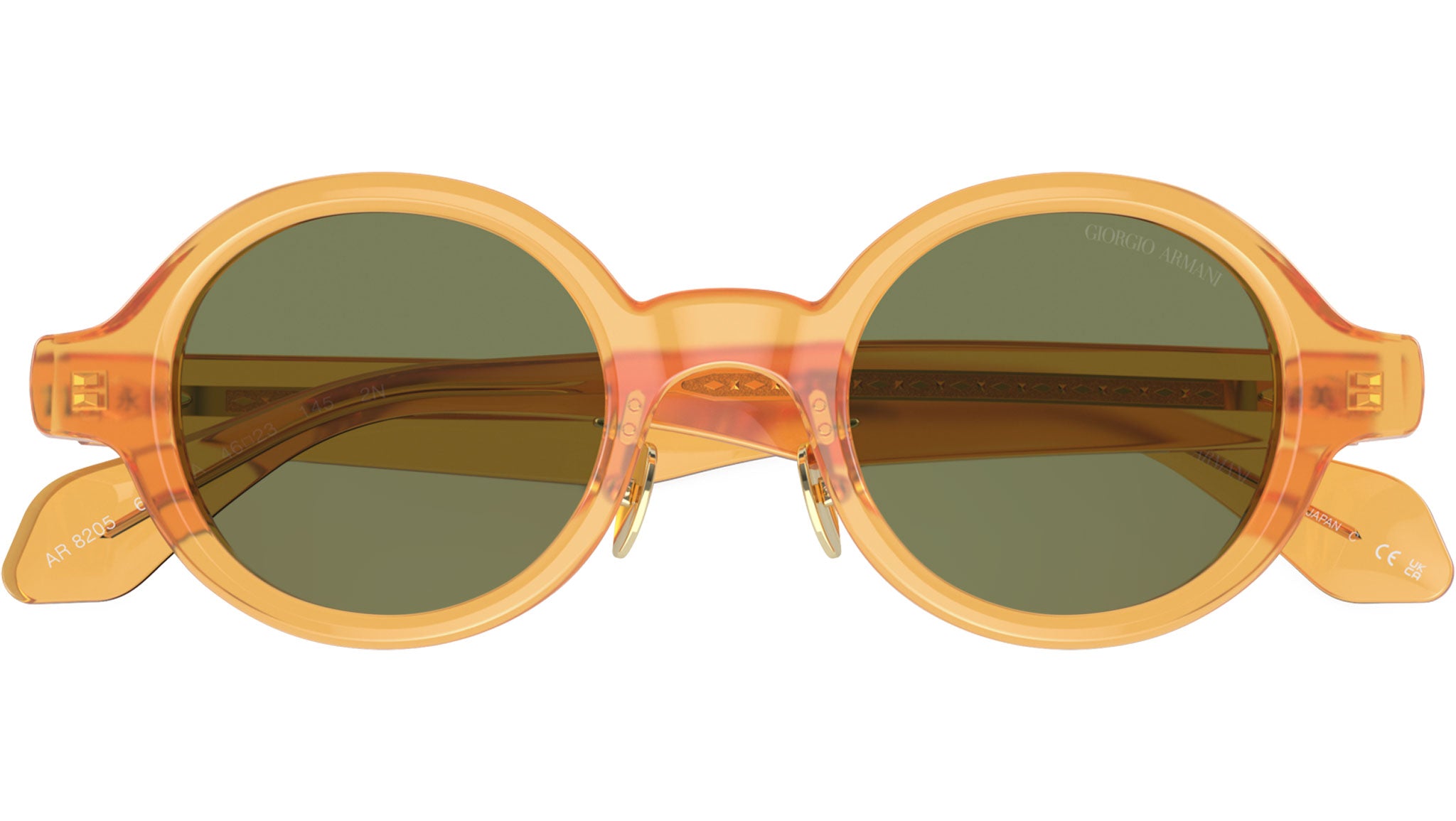 Occhiali da sole Giorgio Armani linea Runway modello AR8205 codice colore 60632A con montatura full rim in acetato miele trasparente e lenti in poliammide color verde. Fitting: con naselli regolabili. Linea: Runway. Codice modello: AR8205. Codice colore: 60632A. Rivenditore Giorgio Armani autorizzato online. Tutti i modelli Armani vengono consegnati con custodia e accessori originali e sono coperti da garanzia ufficiale del produttore di 12 mesi.