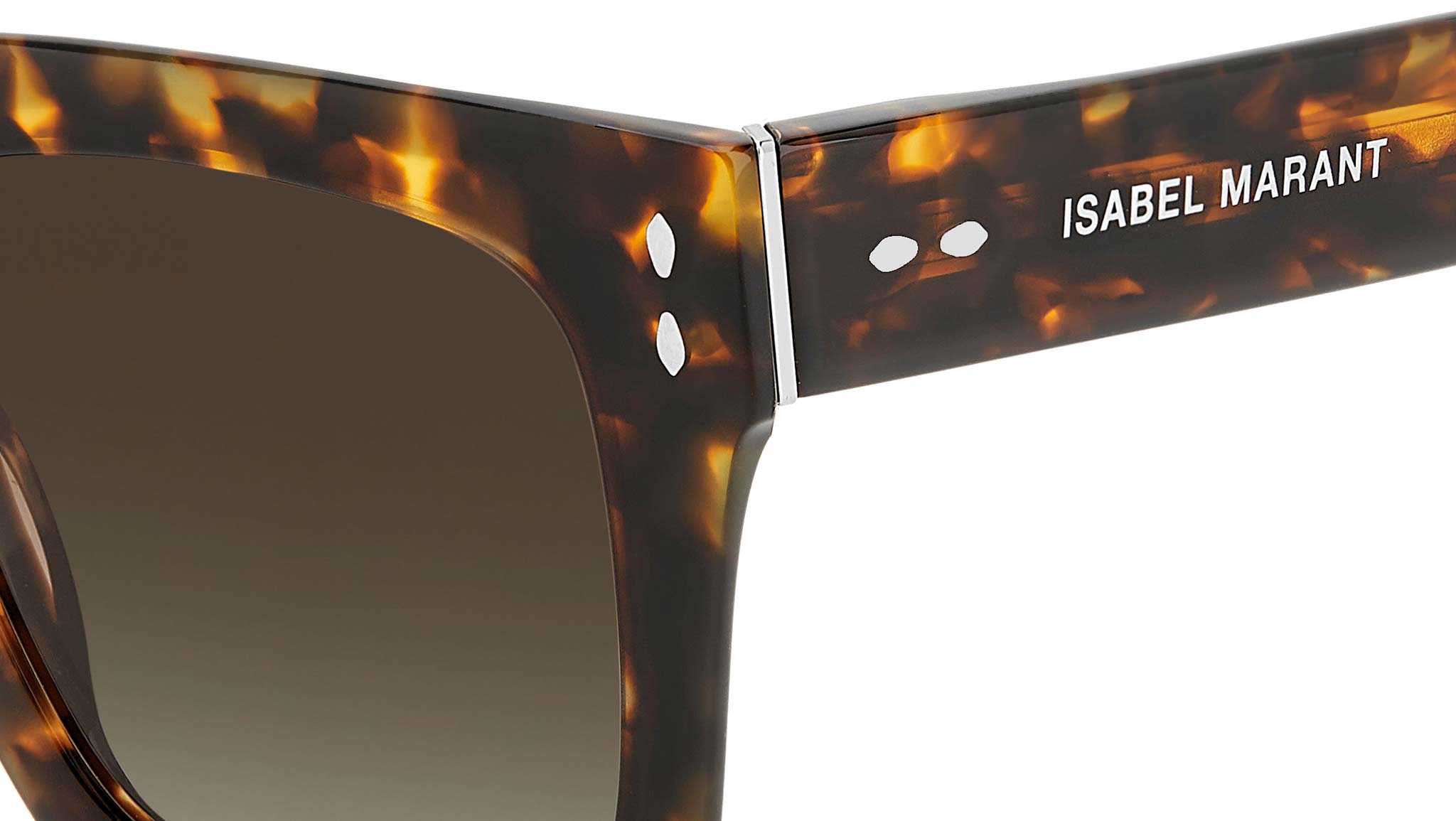 Audace e vistosa ma al contempo leggera e disinvolta: la collezione eyewear The New di Isabel Marant comprende una gamma di montature ultra-flat declinate in nuance femminili ispirate alla collezione prêt-à-porter e agli accessori del brand. Caratterizzati da un’ampia silhouette squadrata, questi occhiali da sole presentano una montatura sottile in acetato e aste slim con l’anima in metallo. Le montature sono siglate da un lussuoso dettaglio in metallo sulla cerniera e da iconici terminali e rivetti in metallo a forma di foglia – cifra stilistica di Isabel Marant.