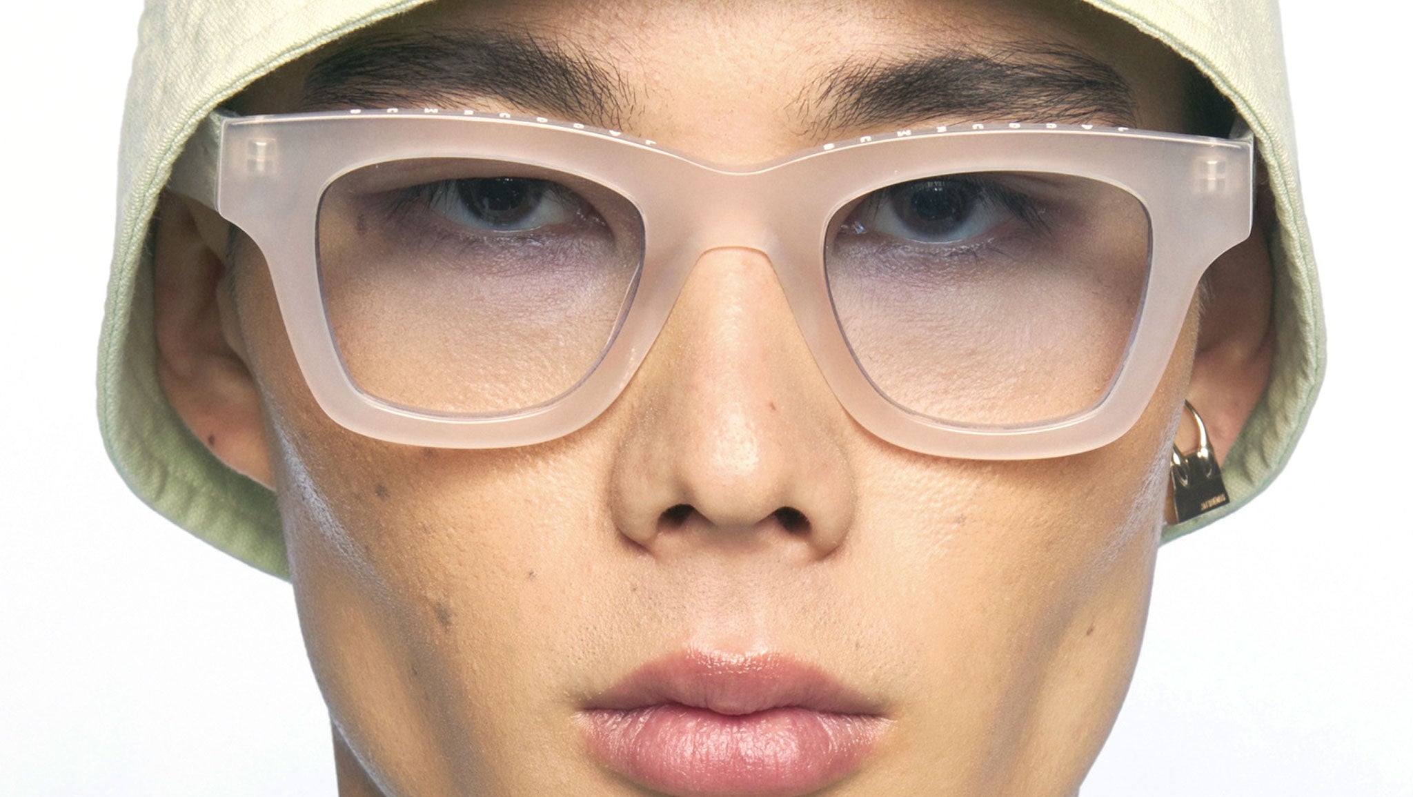 Occhiali da sole Nocio di Jacquemus in acetato con montatura semi trasparente.