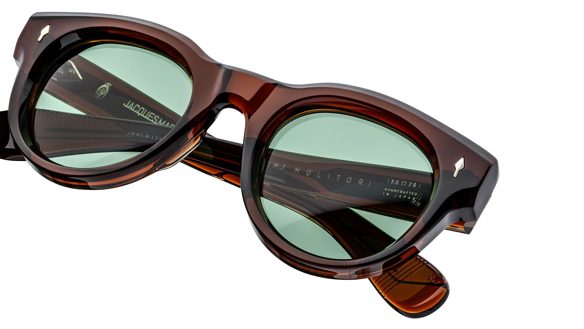 The Jacques Marie Mage Molitor sunglasses are boldly balanced, limited-edition spectacles designed with a medium fit, showcasing a harmonious blend of form and function. Crafted with custom 7-barrel hinges and signature polished metal details, the frame features exposed ‘Classic’ wirecores that highlight the meticulous construction and refined aesthetic synonymous with the brand's elevated design ethos.