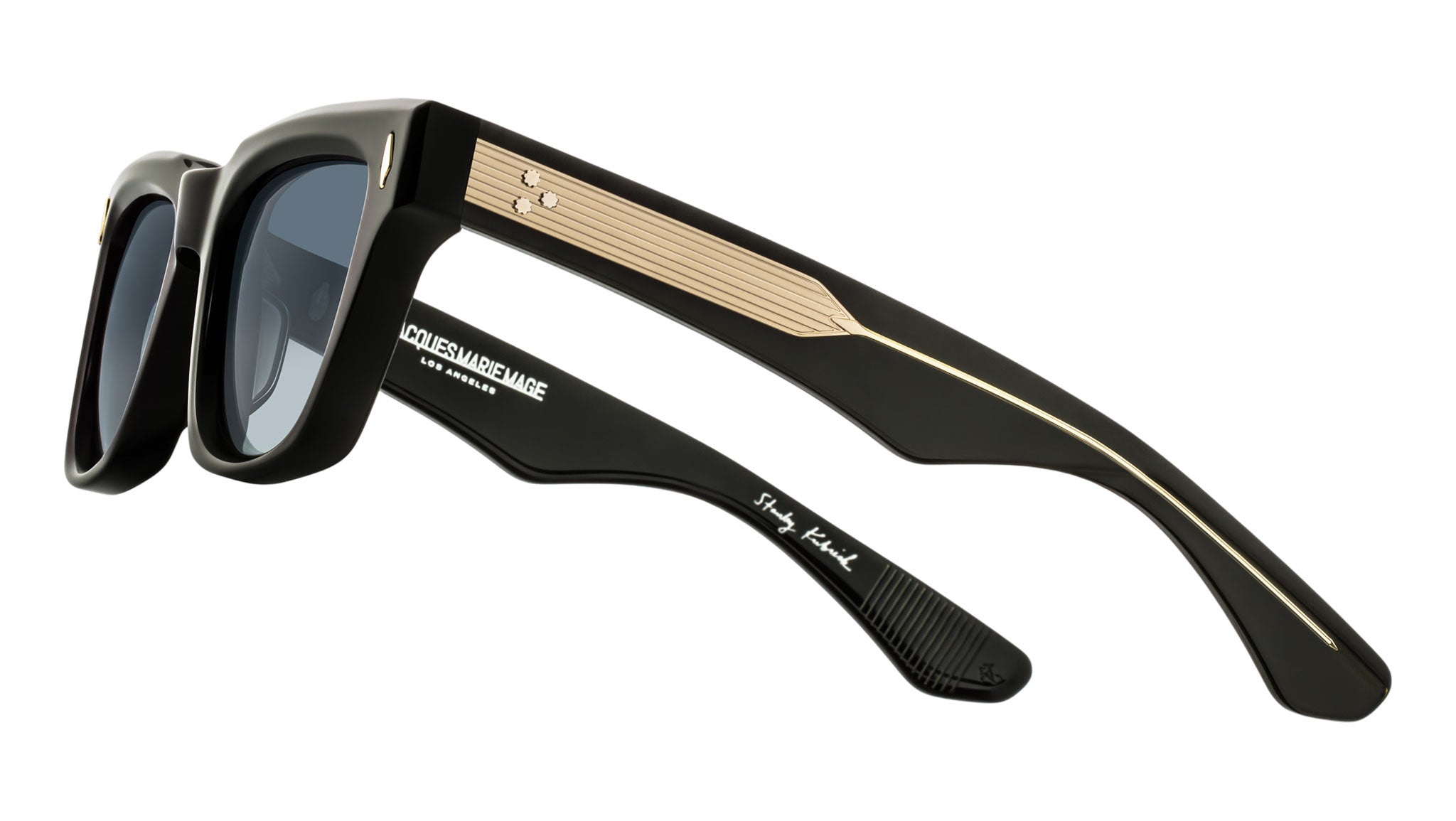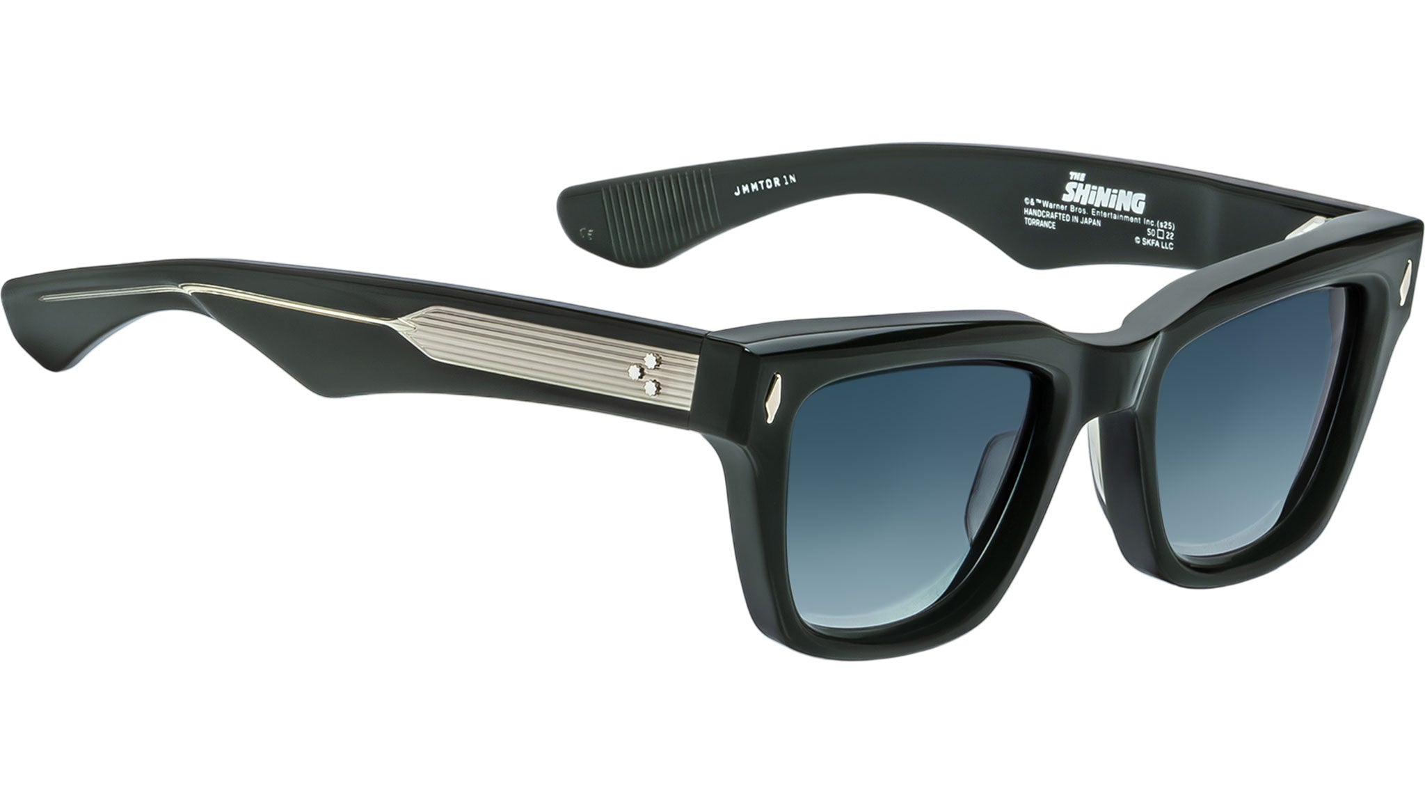 The Torrance from the Stanley Kubrick by Jacques Marie Mage collection is a classic 1970s-inspired expression rendered in a sculptural rectangular silhouette with a boldly beveled brow. Part of a special series of collectible, limited-edition eyewear inspired by The Shining, this refined design pays tribute to one of cinema’s most influential filmmakers and his enduring legacy. Featuring signature arrowhead front pins and precious metal details, the frame balances intellectual rigor with quiet intensity, embodying a studied elegance and subtle edge worthy of its cinematic namesake.