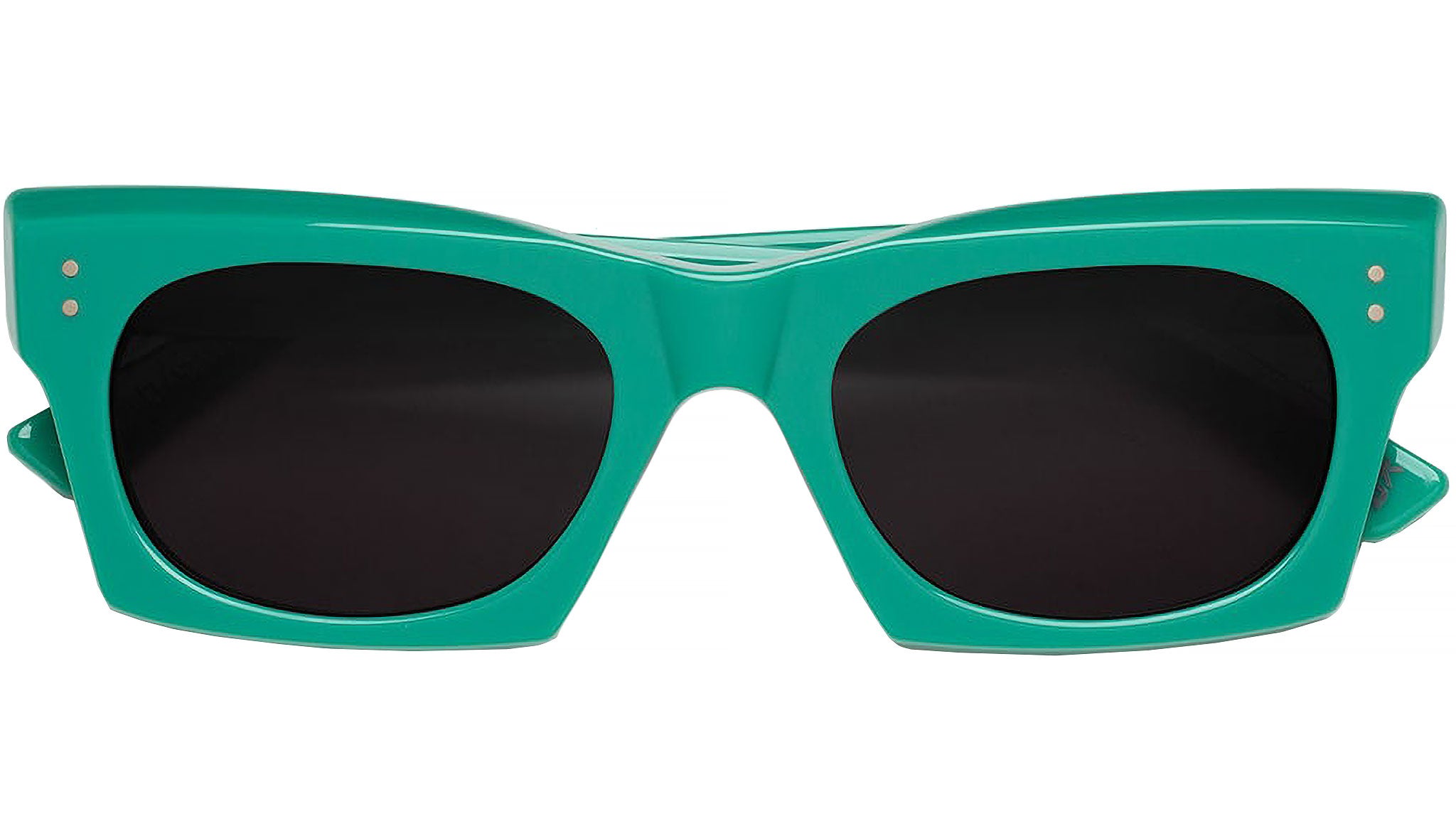 Designed exclusively for Marni, Edku is an angular, precise silhouette conceived as an elevated interpretation for everyday eyewear expression. The model features a thick and sturdy acetate construction, with oval lenses set within sharp geometric rims. Carved, slanted rims on the top section of the lenses highlight the model’s determined geometry. This version of Edku comes in a unique and sleek metallic green finish with smoky black lenses. Sizes: R Lens Width: 52 mm. Frame Front: Frame Side: 145 mm. Product Code Size R: TS0