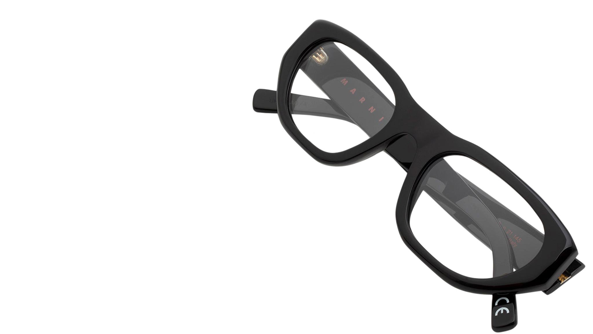 Designed exclusively for Marni, Laamu Atoll is a chunky Optical silhouette characterised by a wide, horizontal shape and a bold brow-line. The model’s thick acetate rims were carefully carved for comfort in use, with curved lines around the lenses and a slanted profile. This version comes in black acetate. Sizes: R Lens Width: 53 mm. Frame Front: Frame Side: 145 mm. Product Code Size R: UHC