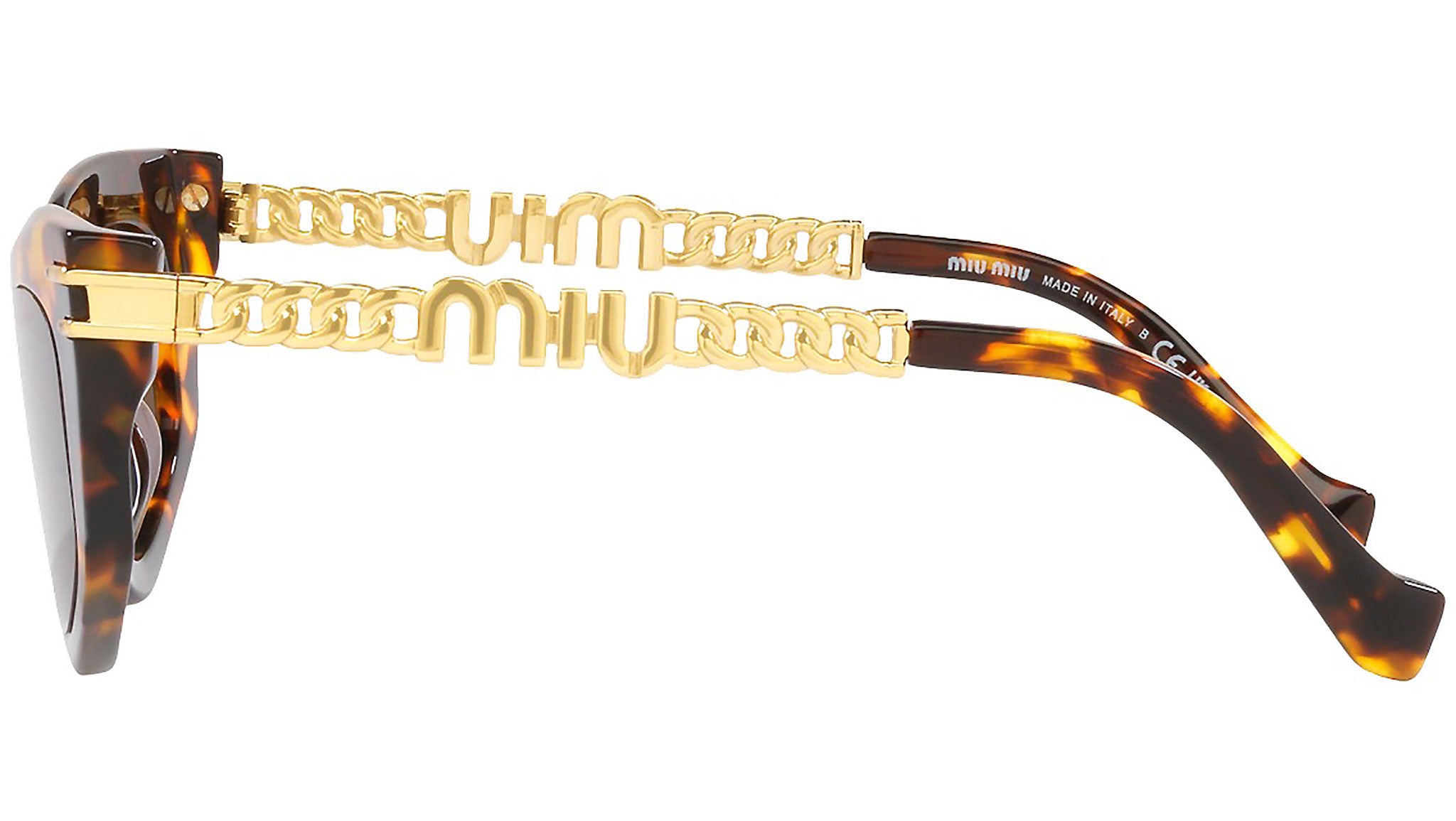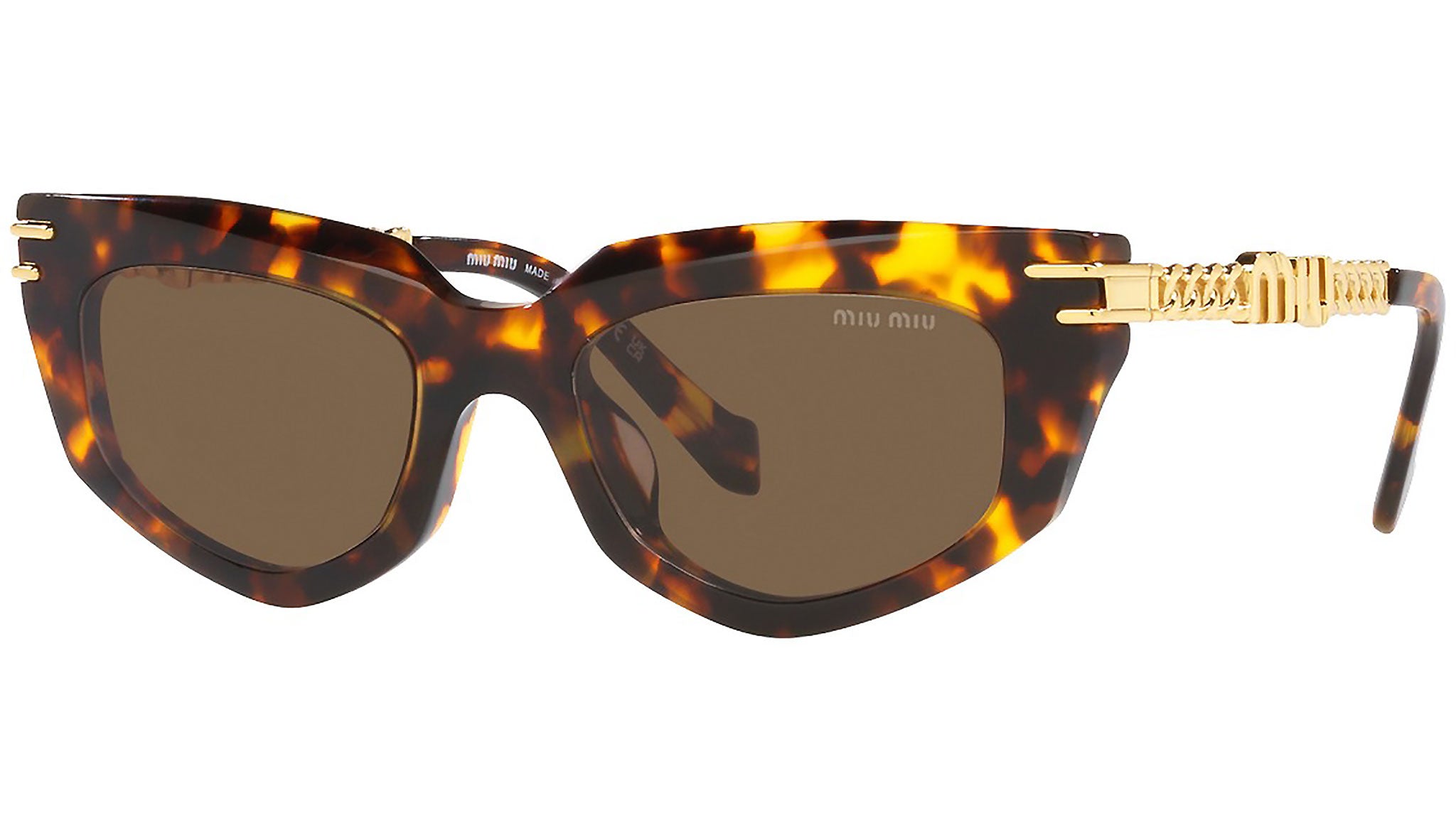 Occhiali da sole Miu Miu modello MU 70US variante colore VAU06B avana, con lenti color marrone scuro. Miu Miu offre creazioni uniche, in cui la costante ricerca stilistica si combina perfettamente con la maestria artigianale della lavorazione. Le silhouette femminili e sinuose delle montature sono espressione di una ricchezza dei dettagli che rispecchia pienamente i codici stilistici e l’indiscusso talento del brand nell’unire il design non convenzionale ad un romanticismo dai rimandi retrò.
