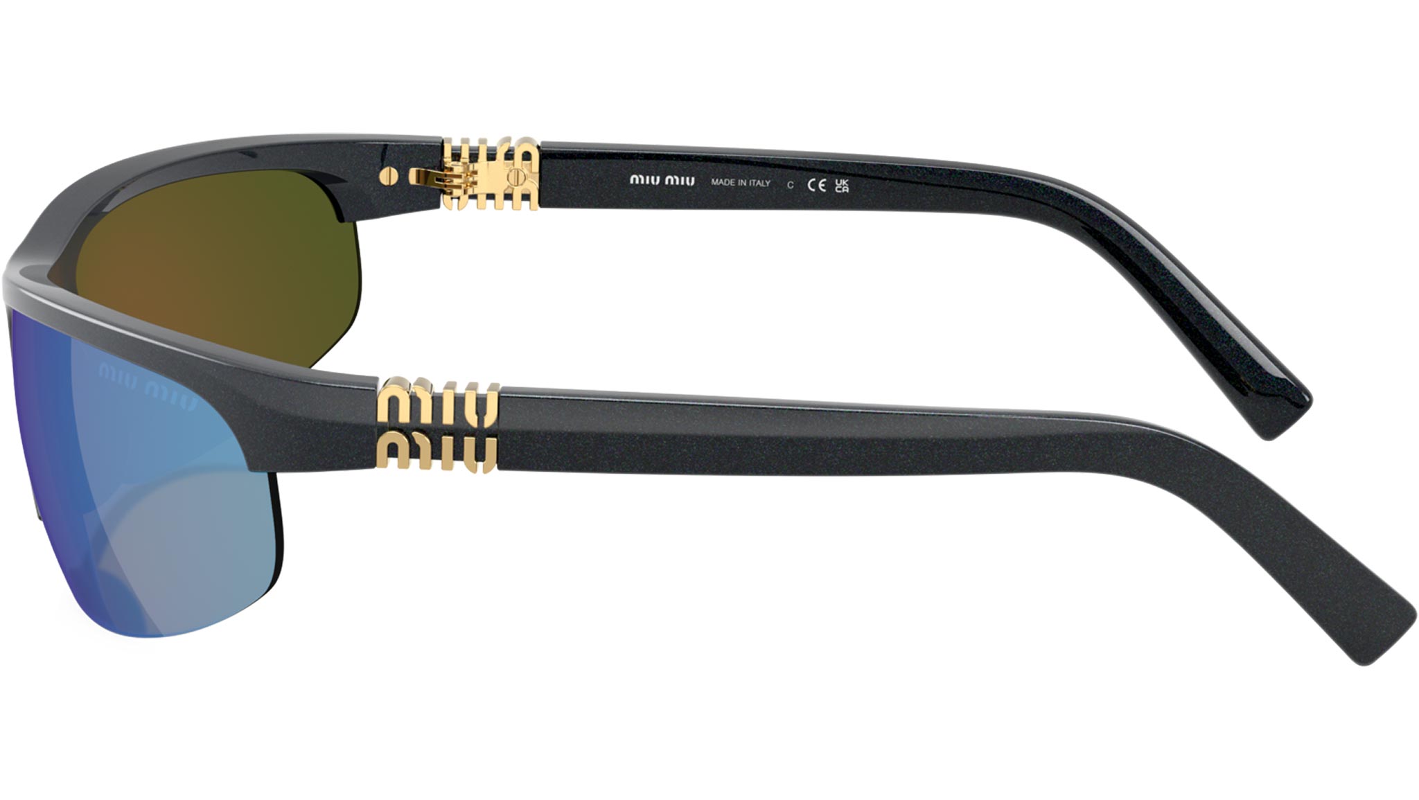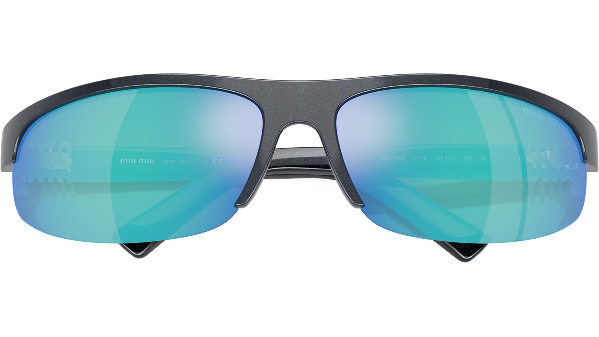 Occhiali da sole Miu Miu MU A02S 19Y10K donna con montatura ovale in Injected avio metallico e lenti in policarbonato color specchio verde chiaro blu. Vestibilità a ponte alto. Linea: Fashion Show. Codice modello: 0MU A02S. Codice colore: 19Y10K. Made in Italy. Rivenditore autorizzato Miu Miu online. Gli occhiali vengono consegnati con custodia e accessori originali e sono coperti dalla garanzia ufficiale di 12 mesi del produttore.