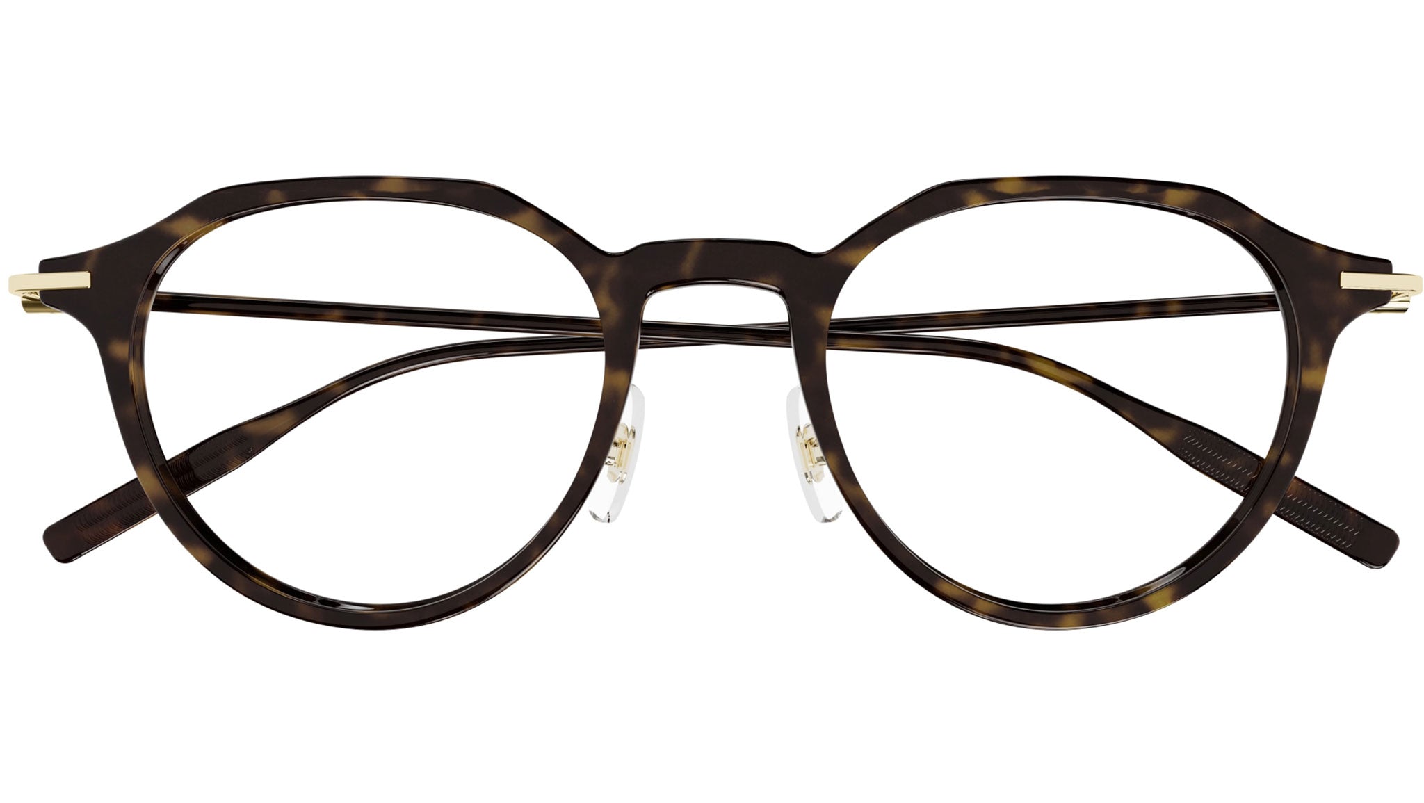 Occhiali da vista Montblanc Snowcap modello MB0355O in iniettato panto codice colore 002 tartaruga scuro lucido con aste in oro e lenti demo. Rivenditore autorizzato Montblanc online. Gli occhiali vengono consegnati con custodia e accessori originali e sono coperti dalla garanzia ufficiale di 12 mesi del produttore.