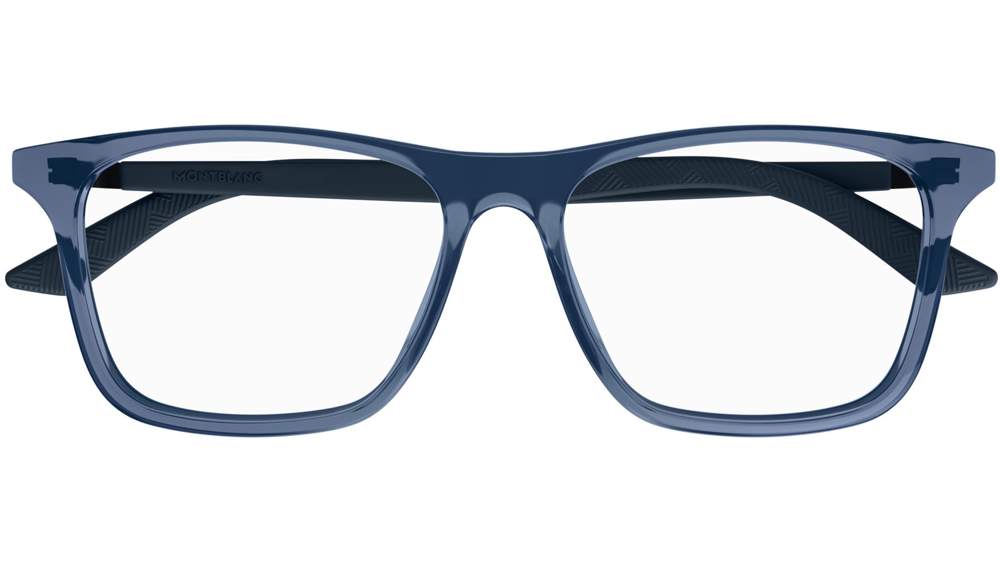 Occhiali da vista Montblanc Extreme modello MB0359O in acetato riciclato rettangolare blu trasparente lucido con aste in blu e lenti demo. Rivenditore autorizzato Montblanc online. Gli occhiali vengono consegnati con custodia e accessori originali e sono coperti dalla garanzia ufficiale di 12 mesi del produttore.