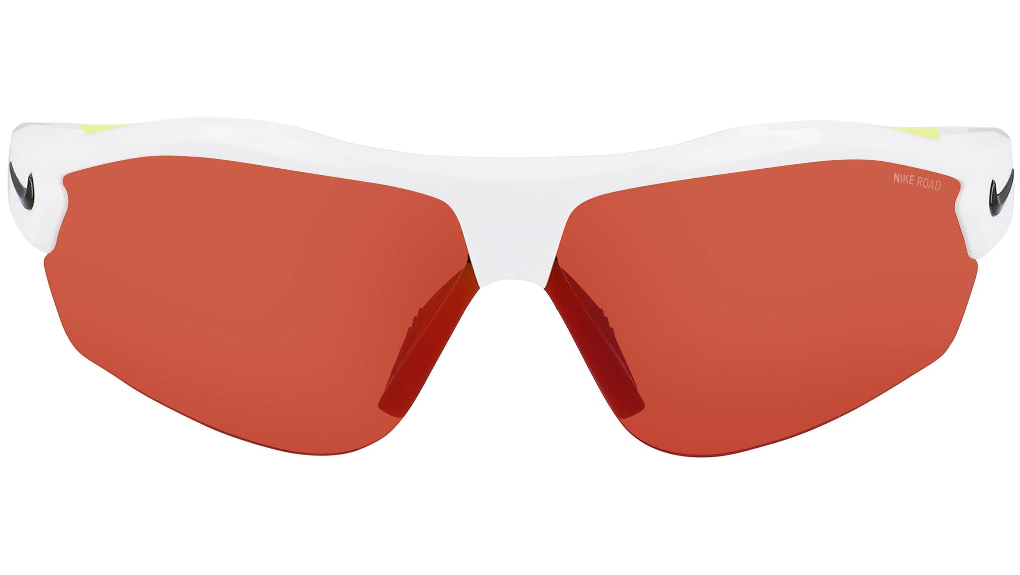 The pinnacle of comfort and clarity: designed using pro-athlete insights, the Nike Show X3 Elite sunglasses offer optimum eyewear performance with a one-piece lens for uninterrupted line of sight, anti-fogging ventilation, and lightweight, ergonomic comfort. Benefits: Nike Road Tint blocks harsh light on the track and road. Nike Elite one-piece lens for superior coverage and clarity. Max optics provide precise vision from all angles. Injected frame material is derived from at least 40% castor bean oil. Contoured lens provides deeper coverage. Anti-fog ventilation holes in the frame circulate air flow. Adjustable temple arms with rubber sleeves for enhanced grip and optimal fit. Floating nose pad helps optimize airflow and absorb impact.