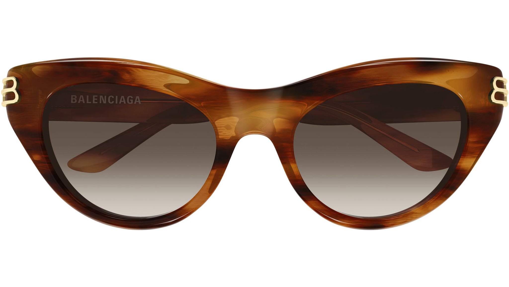 Occhiali da sole Balenciaga BB0466S 002 donna con montatura cat eye in acetato riciclato avana marrone corno lucido e lenti marrone sfumato. Linea: Everyday. Codice modello: BB0466S. Codice colore: 002. Made in Japan. Rivenditore autorizzato Balenciaga online. Gli occhiali vengono consegnati con custodia e accessori originali e sono coperti dalla garanzia ufficiale di 12 mesi del produttore.