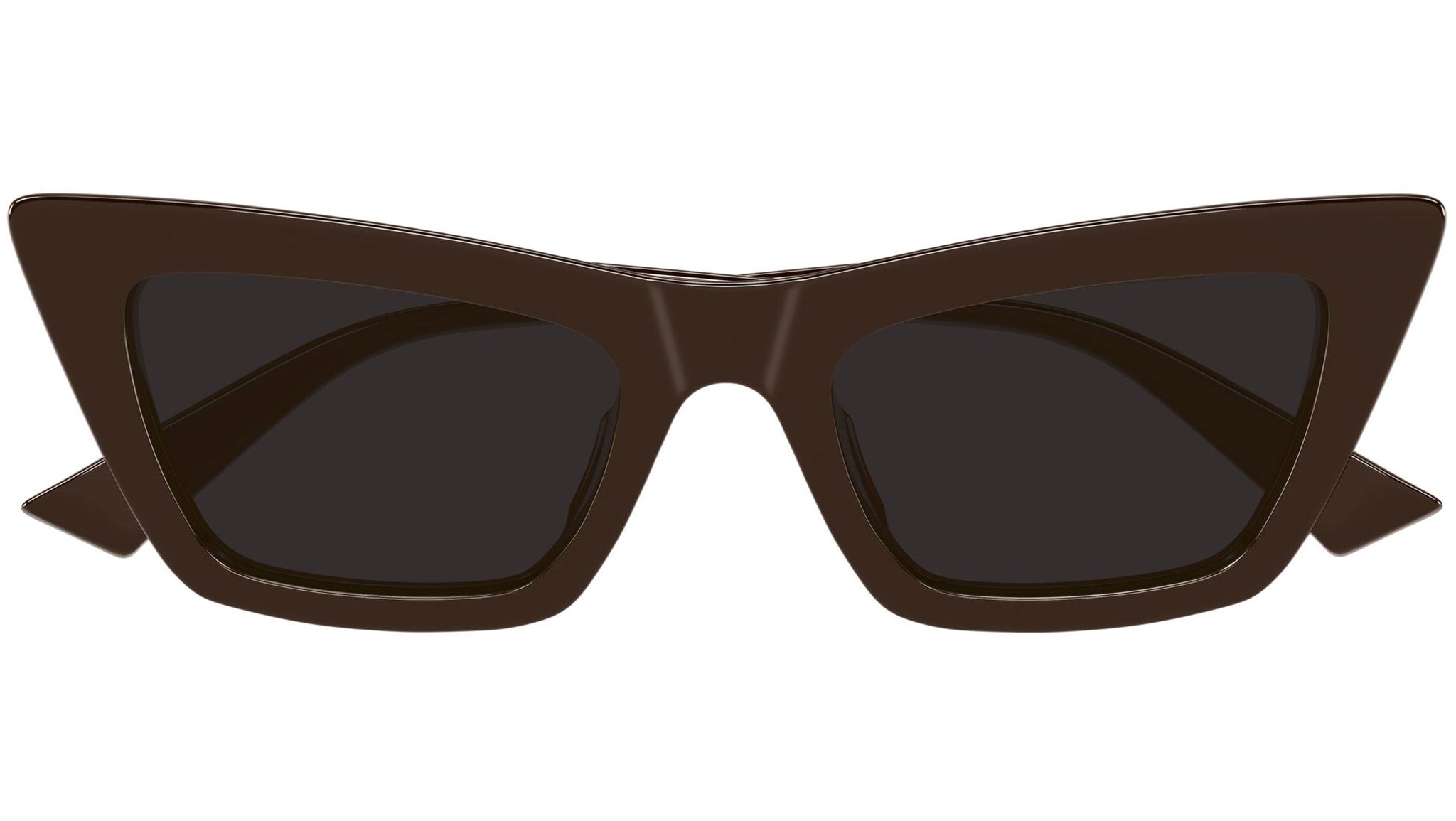 Occhiali da sole Bottega Veneta BV1446S 003 donna con montatura cat eye in acetato riciclato marrone lucido tinta unita e lenti grigio tinta unita. Linea: Ribbon. Codice modello: BV1446S. Codice colore: 003. Made in Italy. Rivenditore autorizzato Bottega Veneta online. Gli occhiali vengono consegnati con custodia e accessori originali e sono coperti dalla garanzia ufficiale di 12 mesi del produttore.