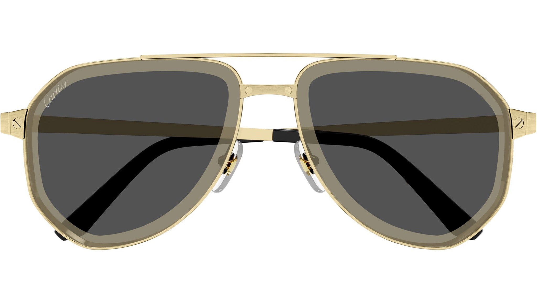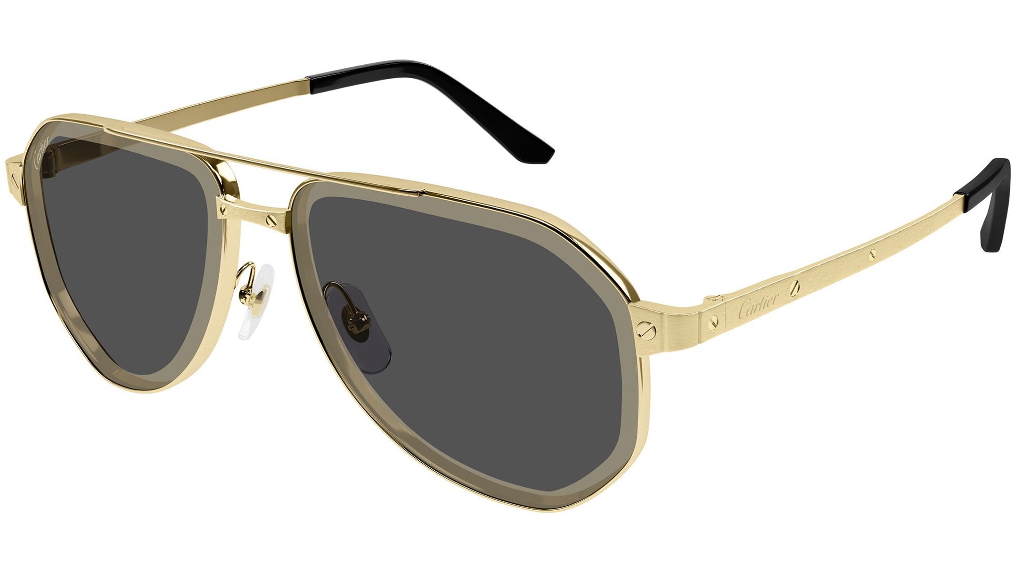 Occhiali da sole Cartier CT0461S 005 uomo con montatura aviatore in metallo color oro satinato satinato e lenti grigio con effetto specchiato shape in shape oro chiaro. Linea: Exception. Codice modello: CT0461S. Codice colore: 005. Made in France. Rivenditore autorizzato Cartier online. Gli occhiali vengono consegnati con custodia e accessori originali e sono coperti dalla garanzia ufficiale di 12 mesi del produttore.