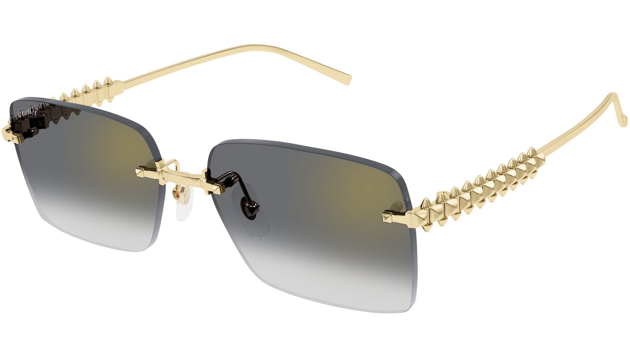 Occhiali da sole Cartier CT0545S 001 donna con montatura rettangolare in metallo oro e lenti grigio sfumato con flash dorato. Linea: Exception. Codice modello: CT0545S. Codice colore: 001. Made in France. Rivenditore autorizzato Cartier online. Gli occhiali vengono consegnati con custodia e accessori originali e sono coperti dalla garanzia ufficiale di 12 mesi del produttore.