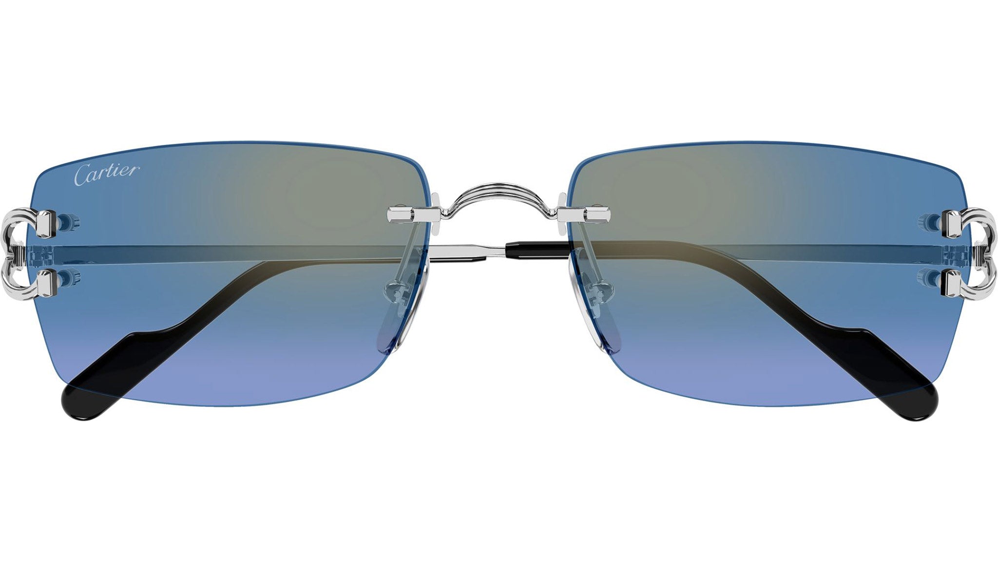 Occhiali da sole Cartier CT0550S 007 uomo con montatura rettangolare in metallo color platino finish satinato e lenti teal e azzurro sfumati con flash dorato. Linea: Core Range. Codice modello: CT0550S. Codice colore: 007. Made in France. Rivenditore autorizzato Cartier online. Gli occhiali vengono consegnati con custodia e accessori originali e sono coperti dalla garanzia ufficiale di 12 mesi del produttore.