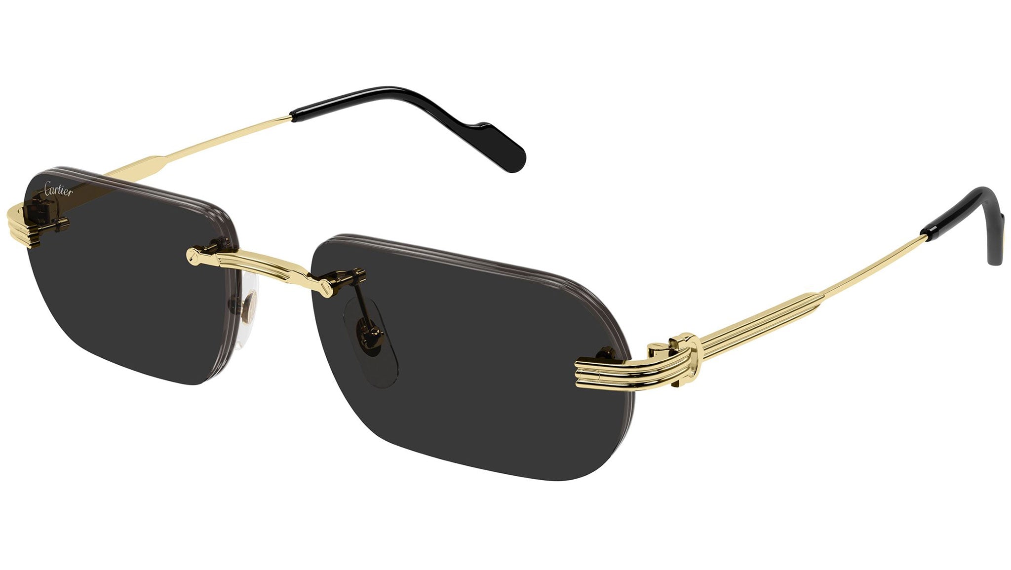 Occhiali da sole Cartier CT0577S 001 uomo con montatura rettangolare in metallo color oro finitura smooth e lenti grigio. Linea: Exception. Codice modello: CT0577S. Codice colore: 001. Made in France. Rivenditore autorizzato Cartier online. Gli occhiali vengono consegnati con custodia e accessori originali e sono coperti dalla garanzia ufficiale di 12 mesi del produttore.