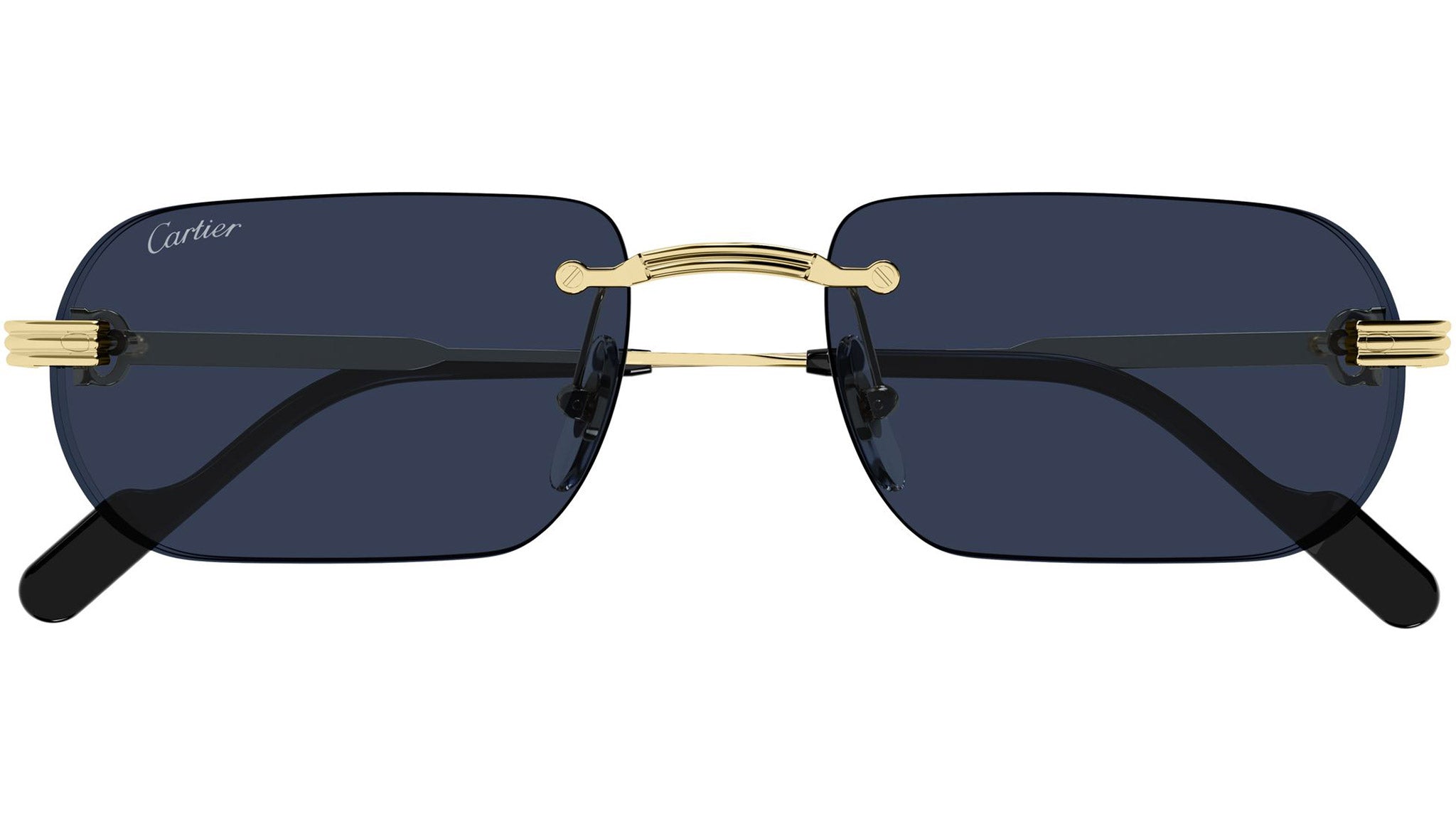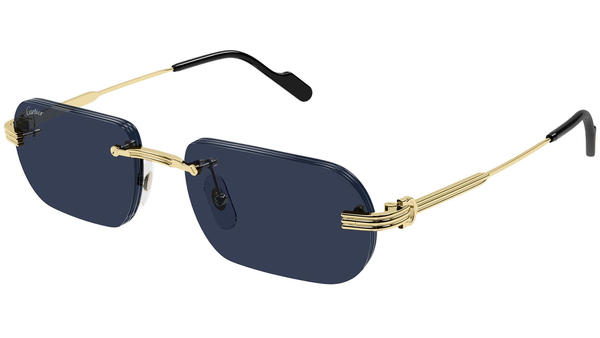 Occhiali da sole Cartier CT0577S 003 uomo con montatura rettangolare in metallo color oro finitura smooth e lenti blu. Linea: Exception. Codice modello: CT0577S. Codice colore: 003. Made in France. Rivenditore autorizzato Cartier online. Gli occhiali vengono consegnati con custodia e accessori originali e sono coperti dalla garanzia ufficiale di 12 mesi del produttore.
