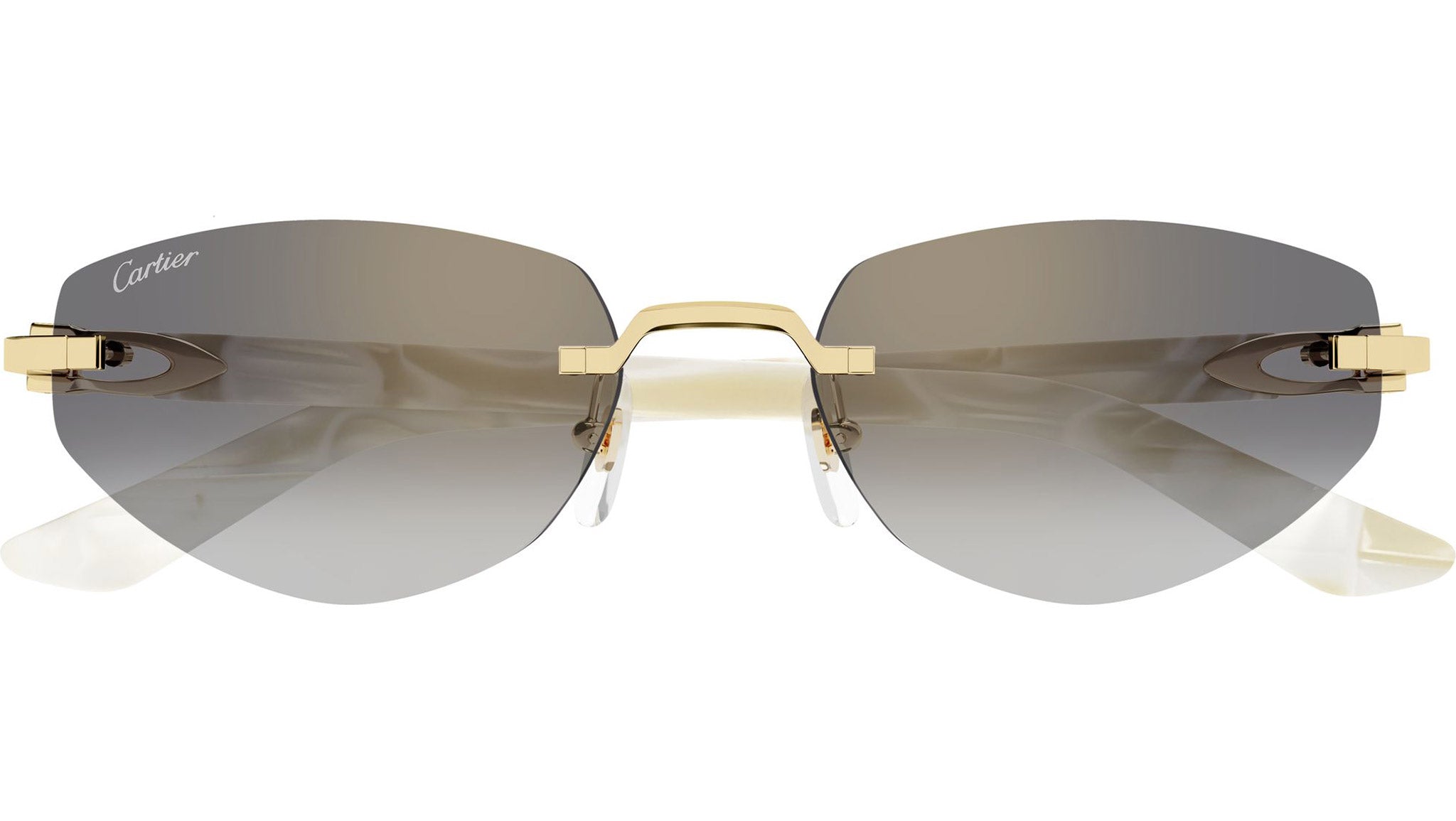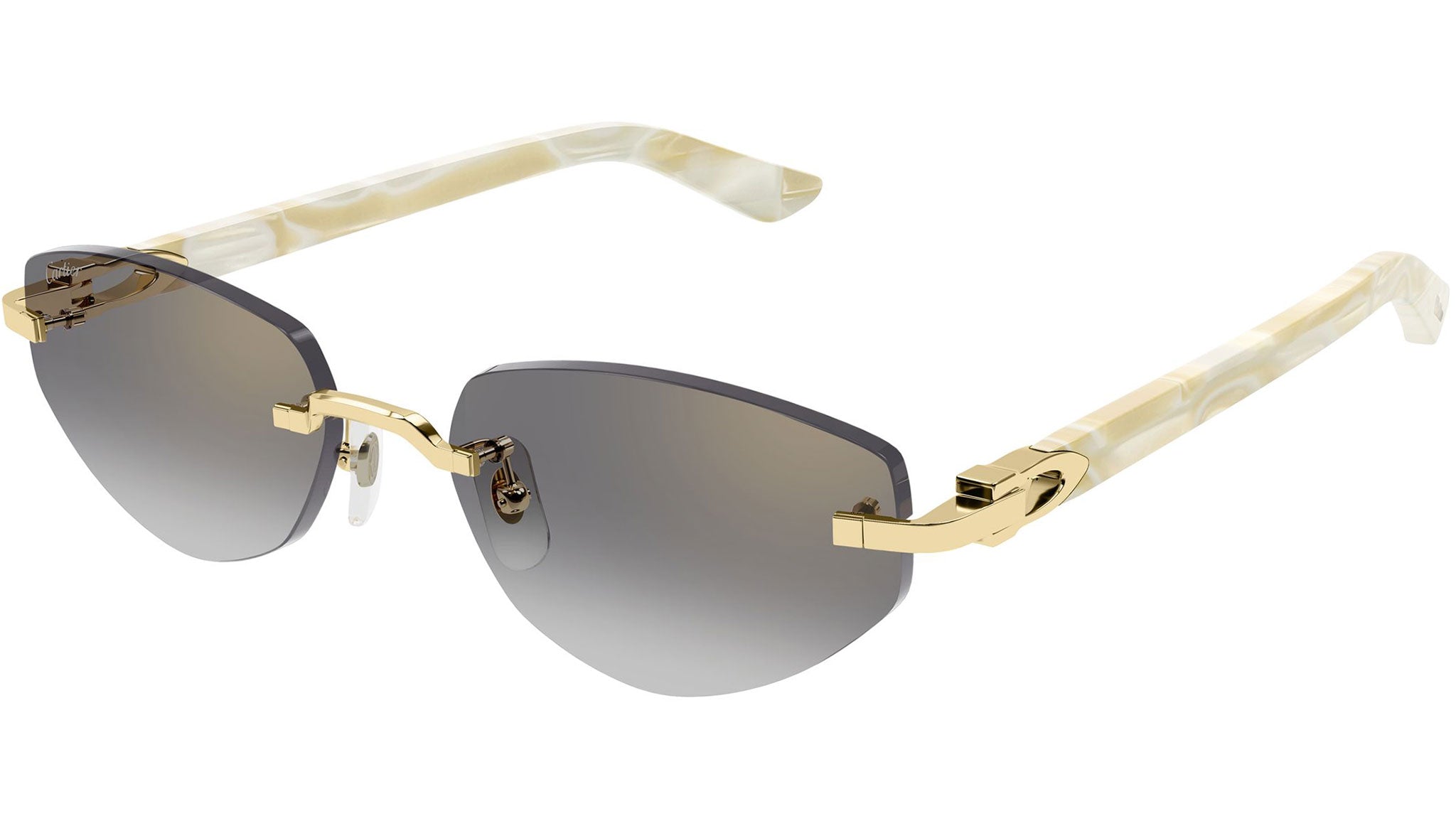 Occhiali da sole Cartier CT0580S 003 donna con montatura geometrica in metallo color oro finitura smooth e lenti grigio sfumato con flash dorato. Linea: Core Range. Codice modello: CT0580S. Codice colore: 003. Made in France. Rivenditore autorizzato Cartier online. Gli occhiali vengono consegnati con custodia e accessori originali e sono coperti dalla garanzia ufficiale di 12 mesi del produttore.