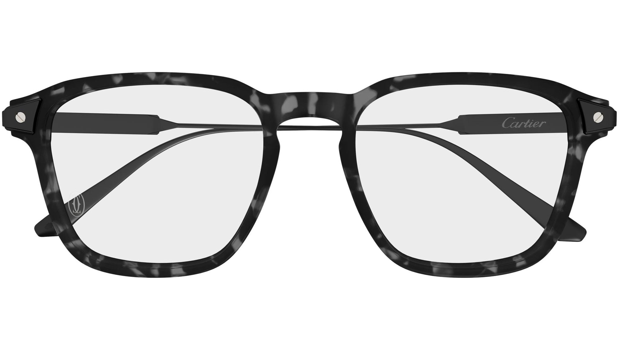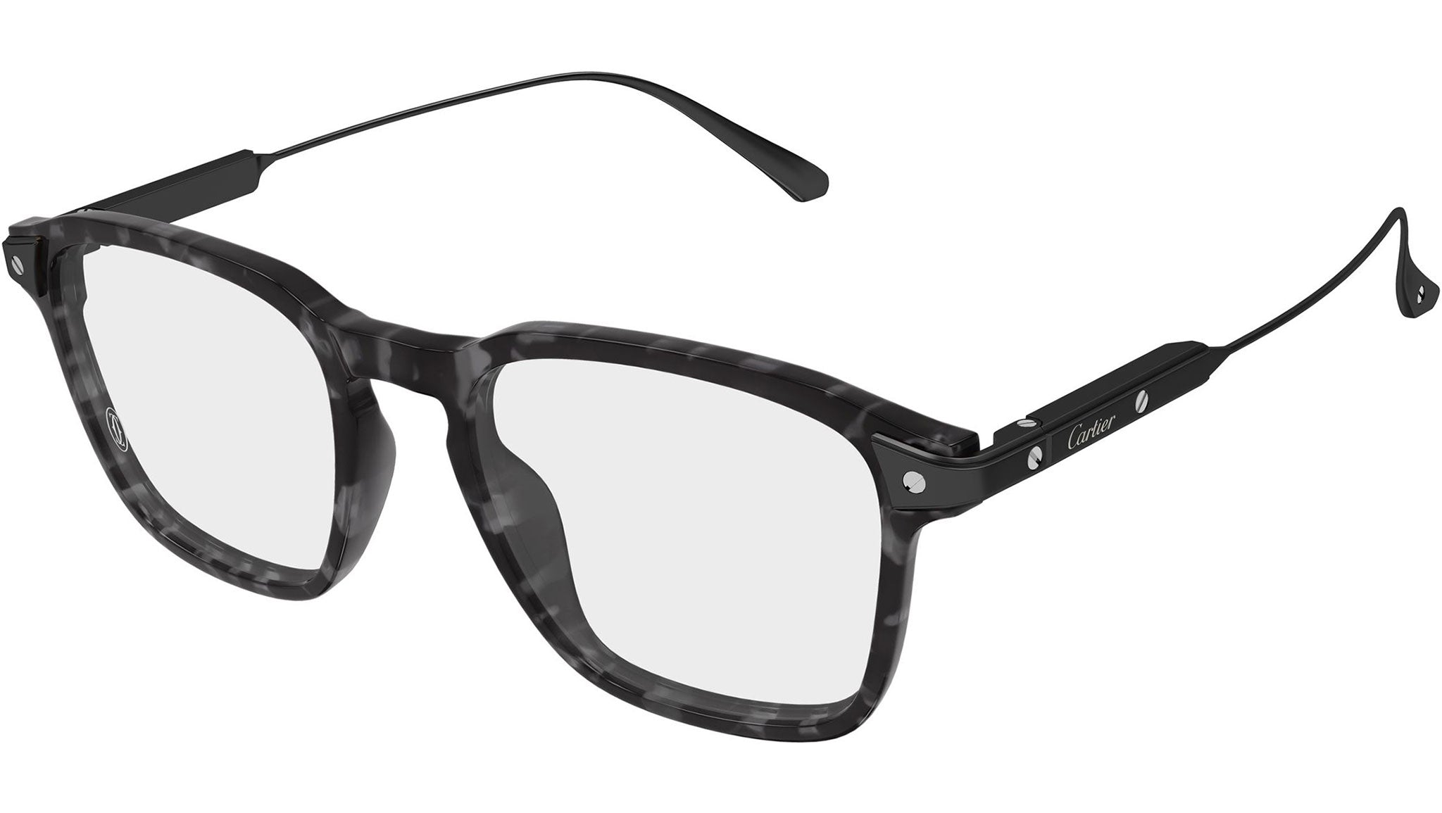 Occhiali da vista Cartier CT0611O 004 uomo con montatura rettangolare in acetato riciclato color grigio scuro effetto tartarugato con terminali in finitura PVD nera opaca e lenti demo. Linea: Exception. Codice modello: CT0611O. Codice colore: 004. Made in Japan. Rivenditore autorizzato Cartier online. Gli occhiali vengono consegnati con custodia e accessori originali e sono coperti dalla garanzia ufficiale di 12 mesi del produttore.