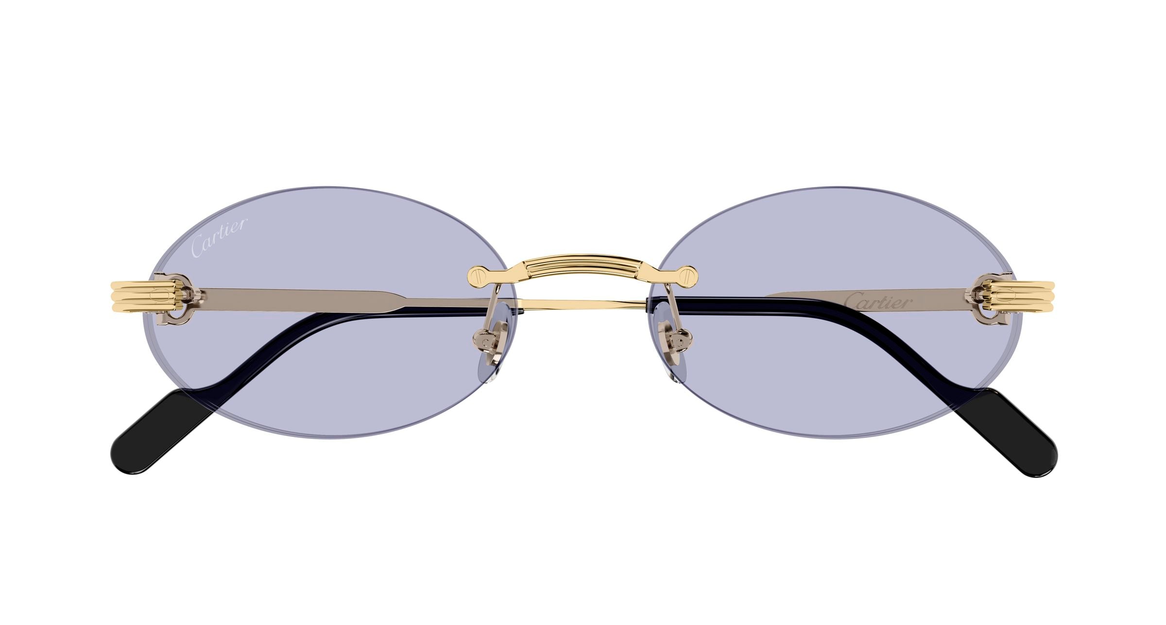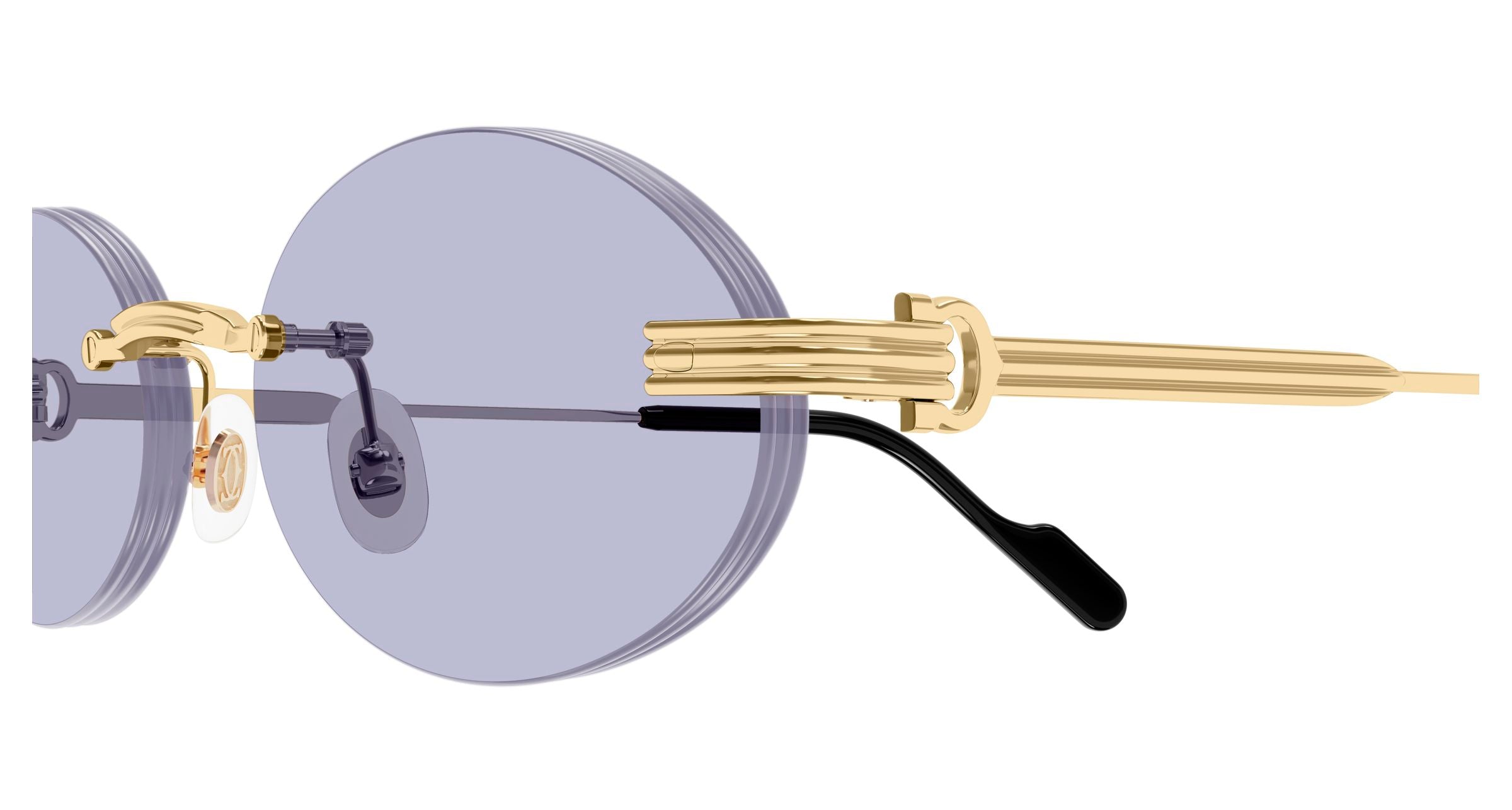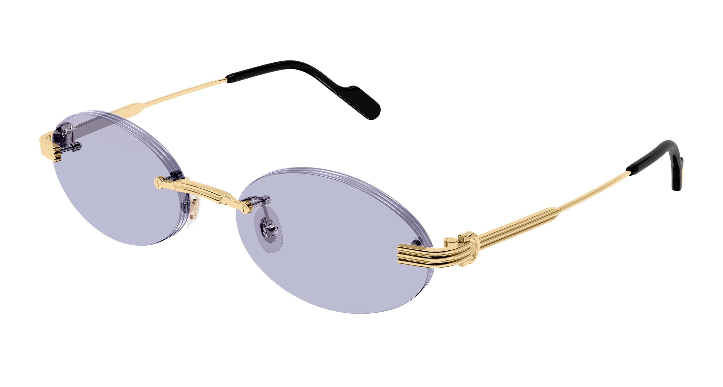 Occhiali da sole Cartier CT0615S unisex con montatura ovale in metallo color oro finitura smooth e lenti lavanda. Linea: Exception. Codice modello: CT0615S. Codice colore: 009. Made in France. Rivenditore autorizzato Cartier online. Gli occhiali vengono consegnati con custodia e accessori originali e sono coperti dalla garanzia ufficiale di 12 mesi del produttore.