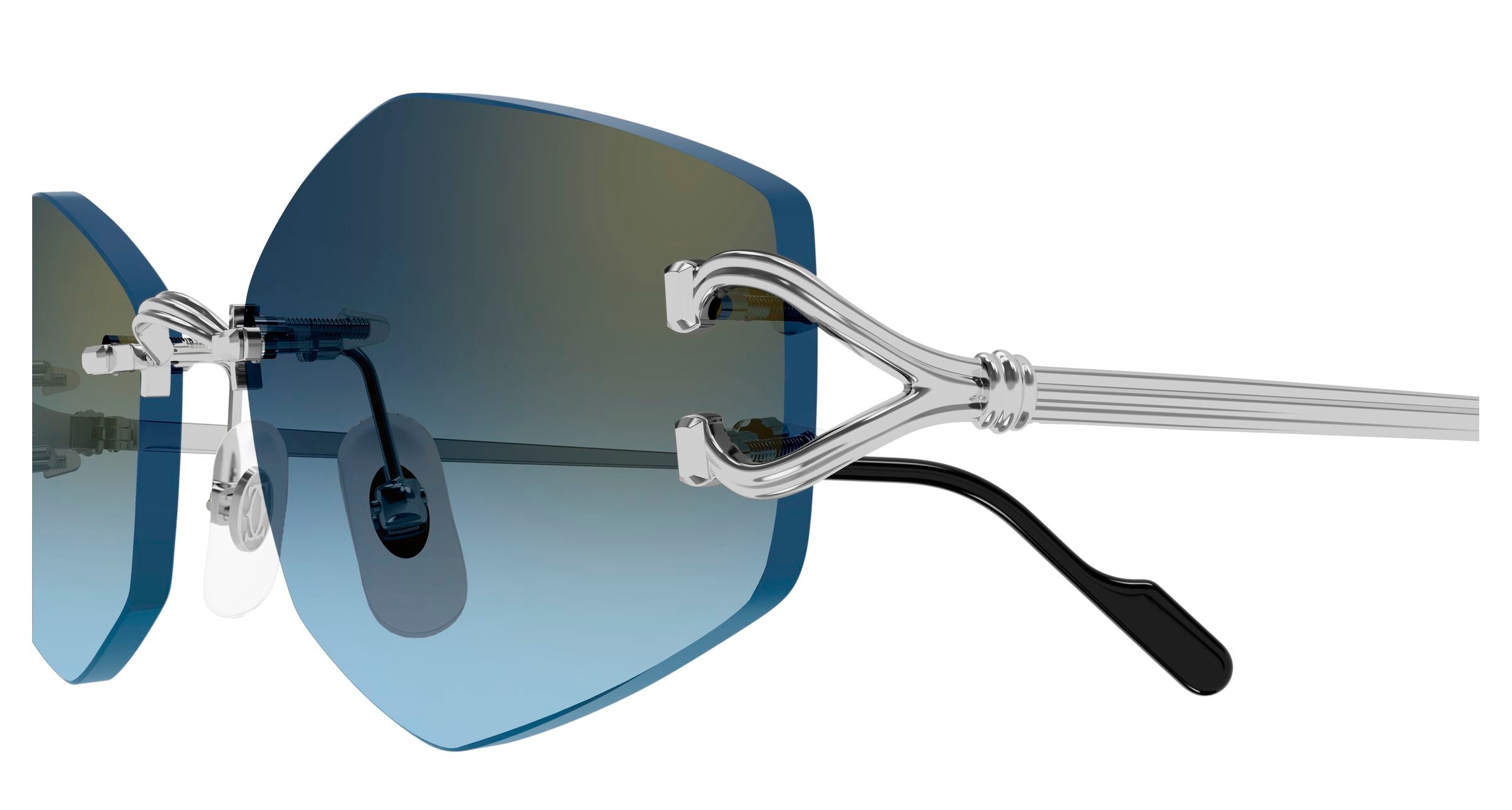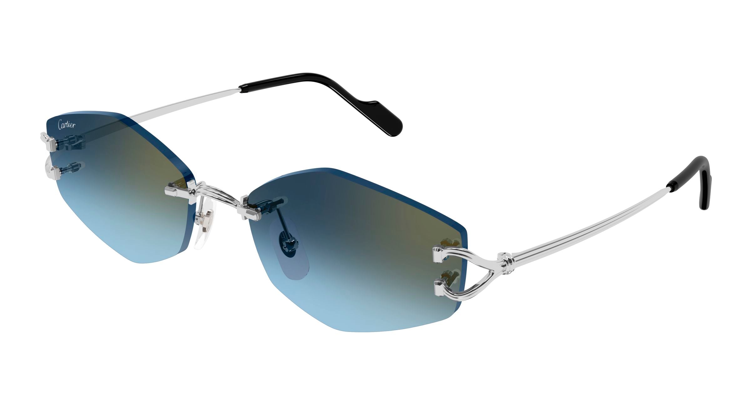 Occhiali da sole Cartier CT0620S 002 unisex con montatura geometrica in metallo color platino finish satinato e lenti blu e azzurro con flash oro. Linea: Core Range. Codice modello: CT0620S. Codice colore: 002. Made in France. Rivenditore autorizzato Cartier online. Gli occhiali vengono consegnati con custodia e accessori originali e sono coperti dalla garanzia ufficiale di 12 mesi del produttore.