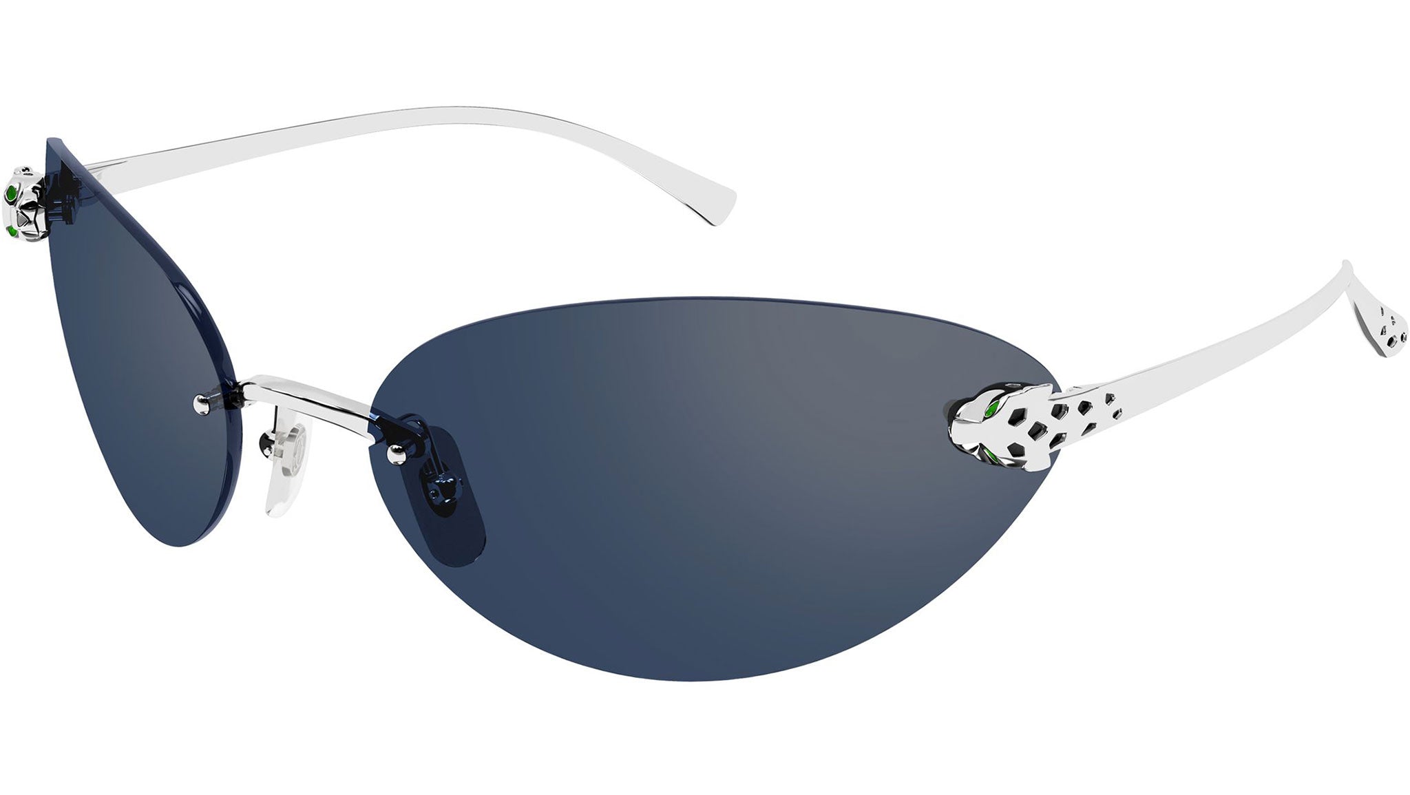 Occhiali da sole Cartier CT0635S 002 donna con montatura cat eye in metallo color platino finish satinato e lenti blu. Linea: Exception. Codice modello: CT0635S. Codice colore: 002. Made in Italy. Rivenditore autorizzato Cartier online. Gli occhiali vengono consegnati con custodia e accessori originali e sono coperti dalla garanzia ufficiale di 12 mesi del produttore.