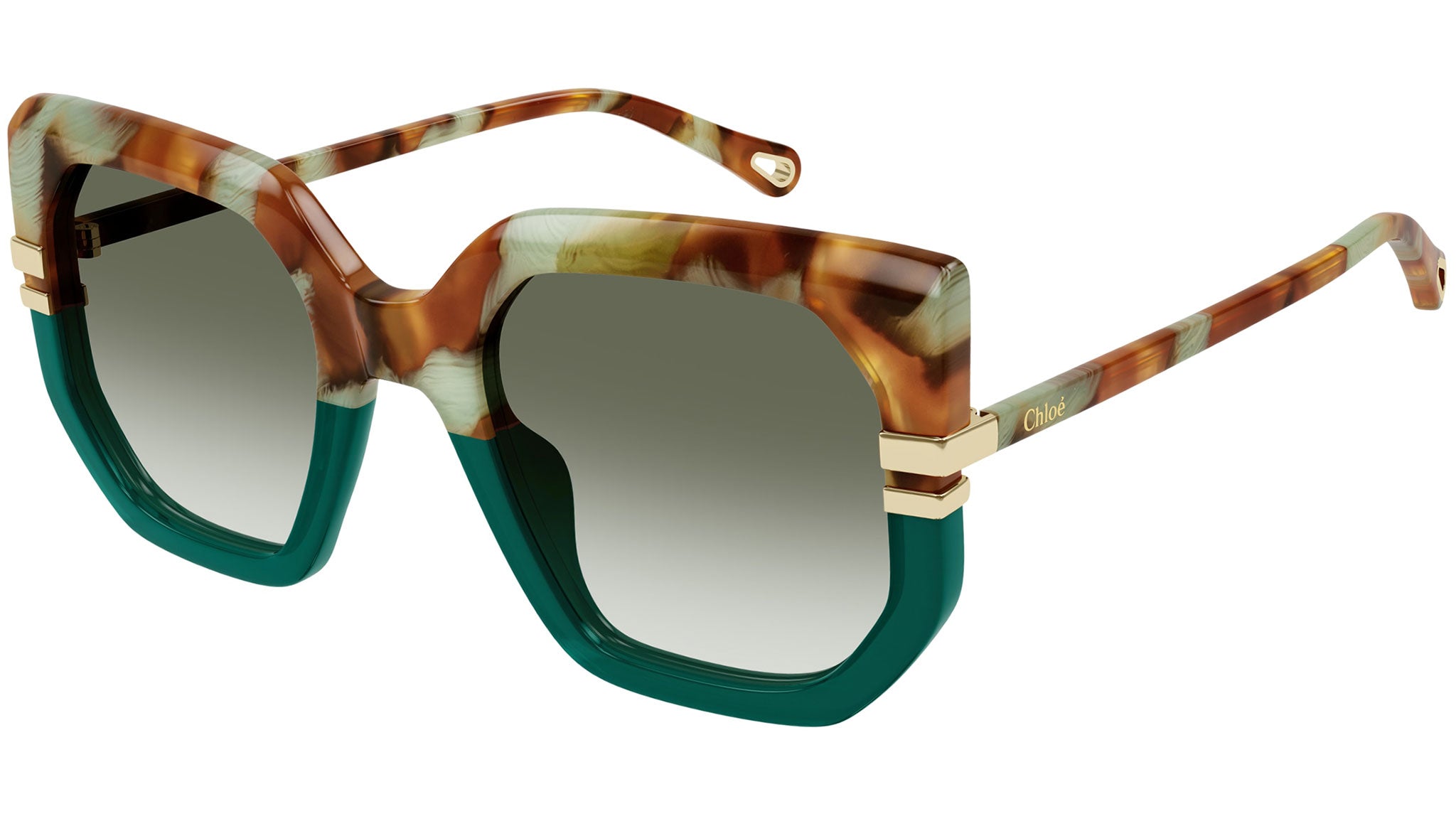 Occhiali da sole Chloé CH0240S 005 donna con montatura butterfly in acetato riciclato caramello lucido / avana maculato verde menta / verde opale lucido e lenti verde sfumato. Linea: Chloé. Codice modello: CH0240S. Codice colore: 005. Made in Italy. Rivenditore autorizzato Chloé online. Gli occhiali vengono consegnati con custodia e accessori originali e sono coperti dalla garanzia ufficiale di 12 mesi del produttore.