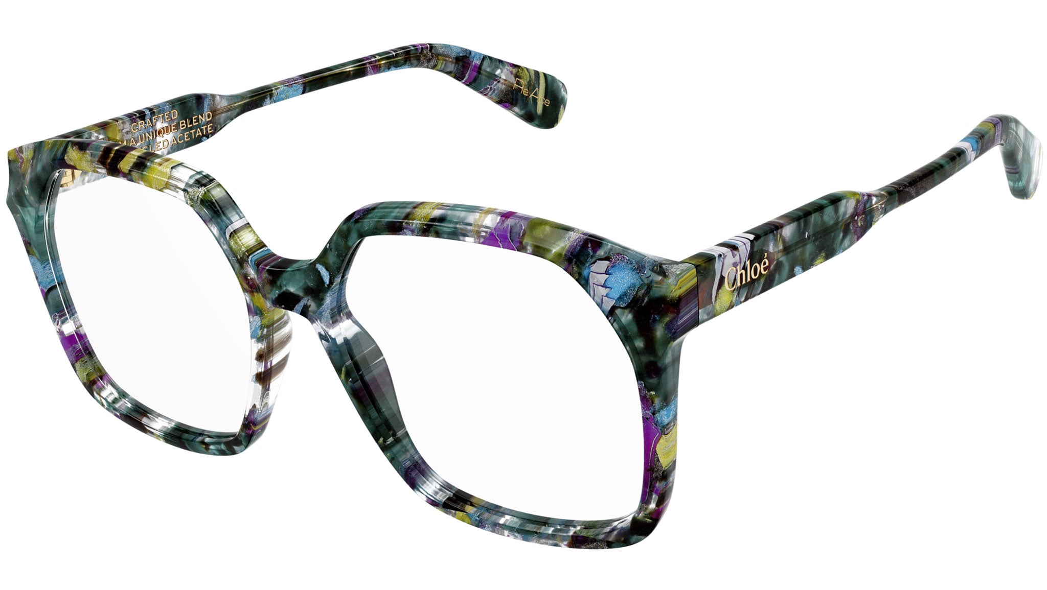 Occhiali da vista Chloé CH0263O 003 donna con montatura rettangolare in acetato riciclato turchese arlecchino e lenti demo. Linea: Chloé. Codice modello: CH0263O. Codice colore: 003. Made in Italy. Rivenditore autorizzato Chloé online. Gli occhiali vengono consegnati con custodia e accessori originali e sono coperti dalla garanzia ufficiale di 12 mesi del produttore.
