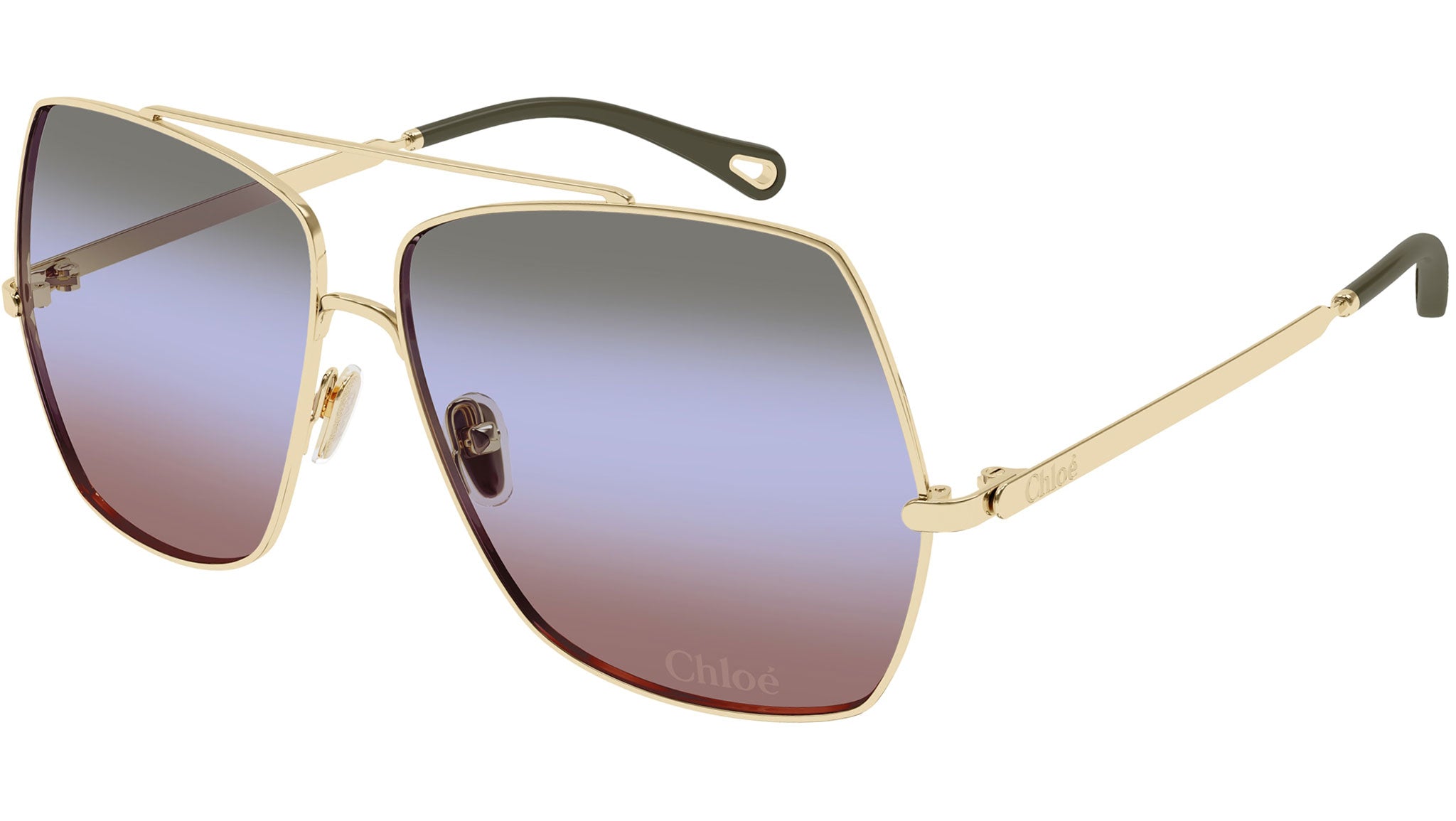 Occhiali da sole Chloé CH0278S 007 donna con montatura rettangolare in metallo oro lucido classico e lenti tripla sfumatura verde / indaco / ruggine. Linea: Chloé. Codice modello: CH0278S. Codice colore: 007. Made in Italy. Rivenditore autorizzato Chloé online. Gli occhiali vengono consegnati con custodia e accessori originali e sono coperti dalla garanzia ufficiale di 12 mesi del produttore.