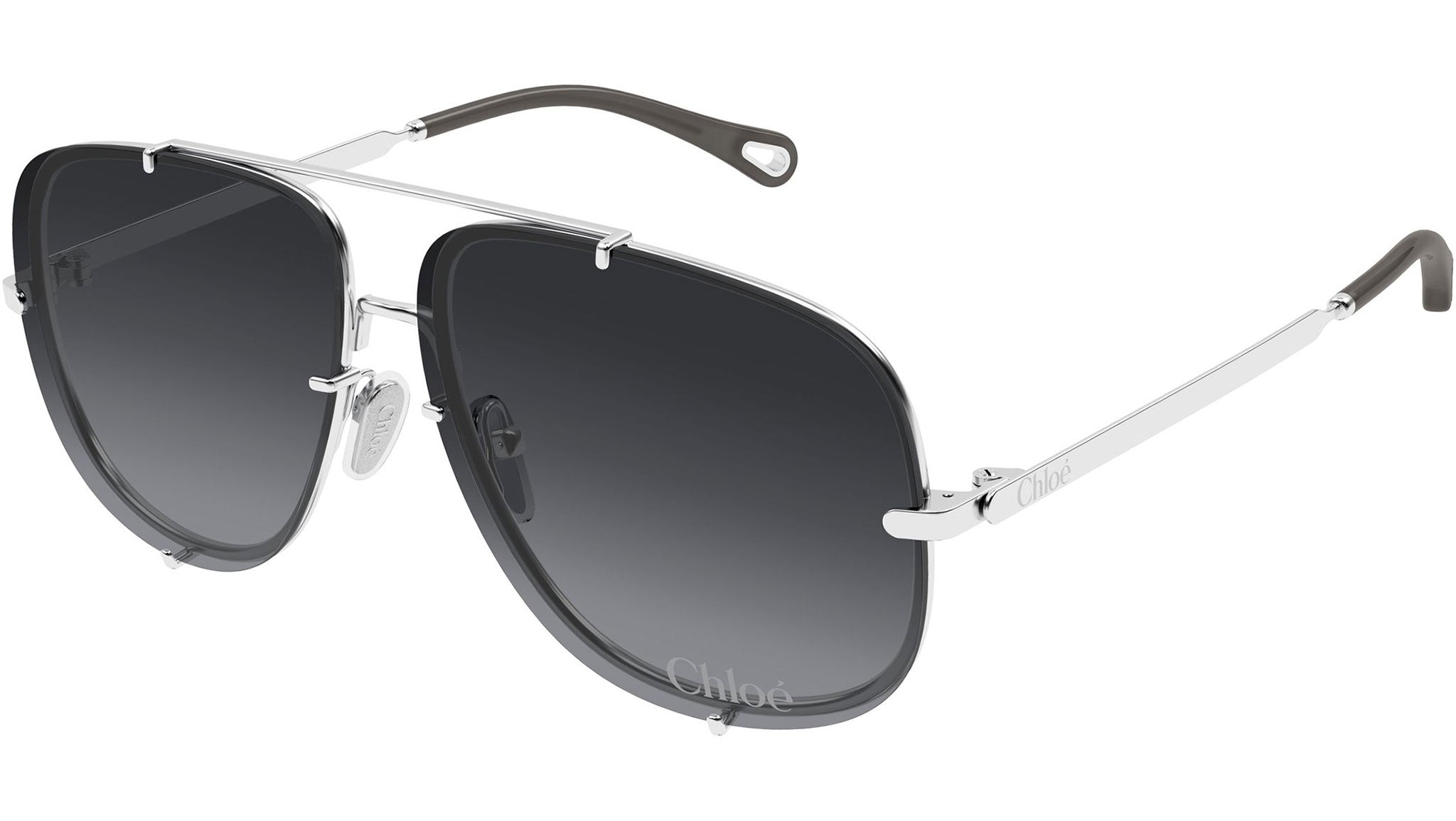 Occhiali da sole Chloé CH0348S 002 donna con montatura aviatore in metallo argento lucido e lenti grigio sfumato. Linea: Chloé. Codice modello: CH0348S. Codice colore: 002. Made in Italy. Rivenditore autorizzato Chloé online. Gli occhiali vengono consegnati con custodia e accessori originali e sono coperti dalla garanzia ufficiale di 12 mesi del produttore.