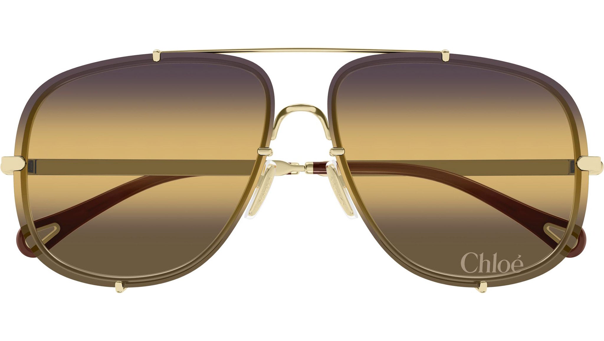 Occhiali da sole Chloé CH0348S 004 donna con montatura aviatore in metallo oro lucido classico e lenti tripla sfumatura viola / miele / marrone. Linea: Chloé. Codice modello: CH0348S. Codice colore: 004. Made in Italy. Rivenditore autorizzato Chloé online. Gli occhiali vengono consegnati con custodia e accessori originali e sono coperti dalla garanzia ufficiale di 12 mesi del produttore.