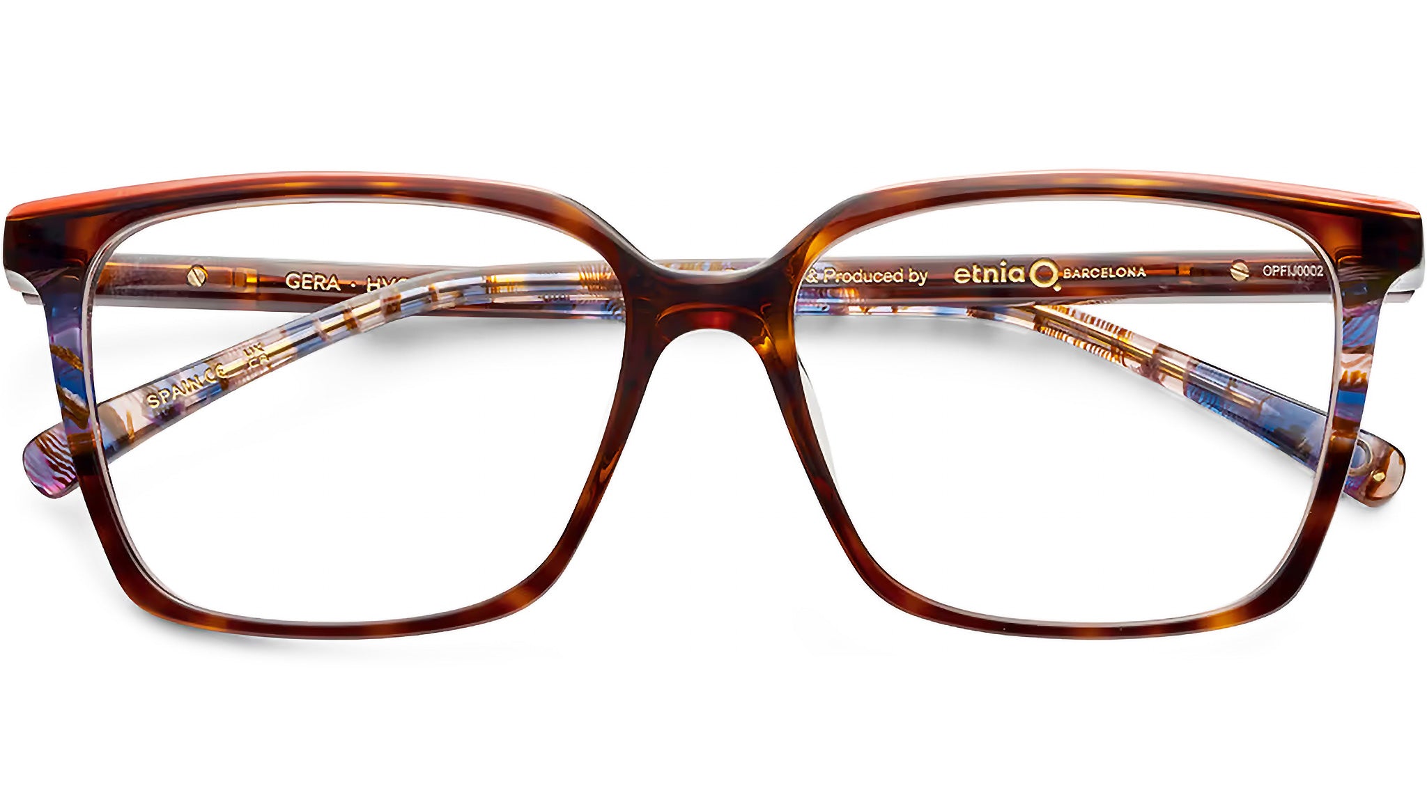 Occhiali da vista Etnia Barcelona GERA in acetato tartarugato marrone scuro / motivo colorato con lenti demo. Codice modello: GERA 55O. Codice colore: HVCO. Rivenditore autorizzato online Etnia Barcelona. Gli occhiali vengono forniti con custodia e accessori originali e sono coperti dalla garanzia standard del produttore di 12 mesi.